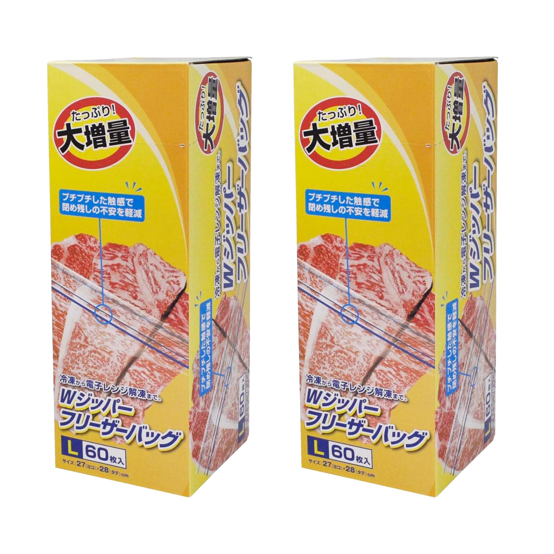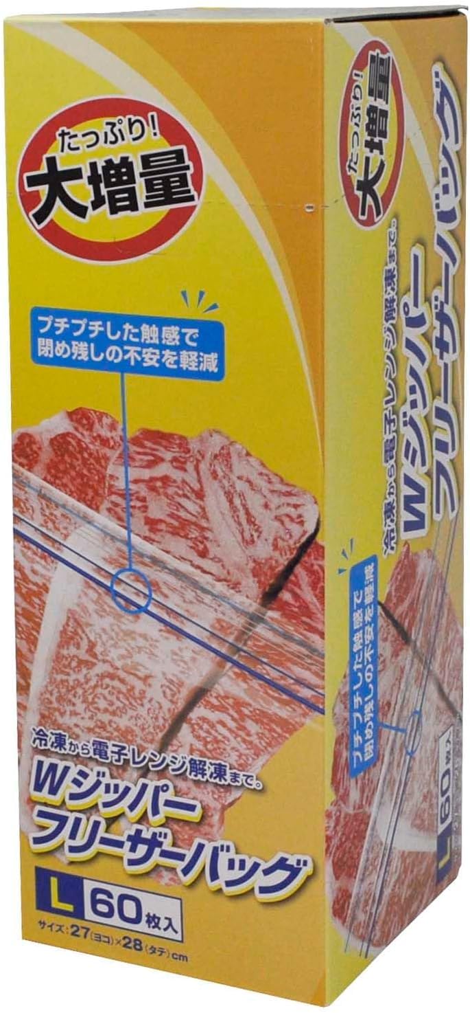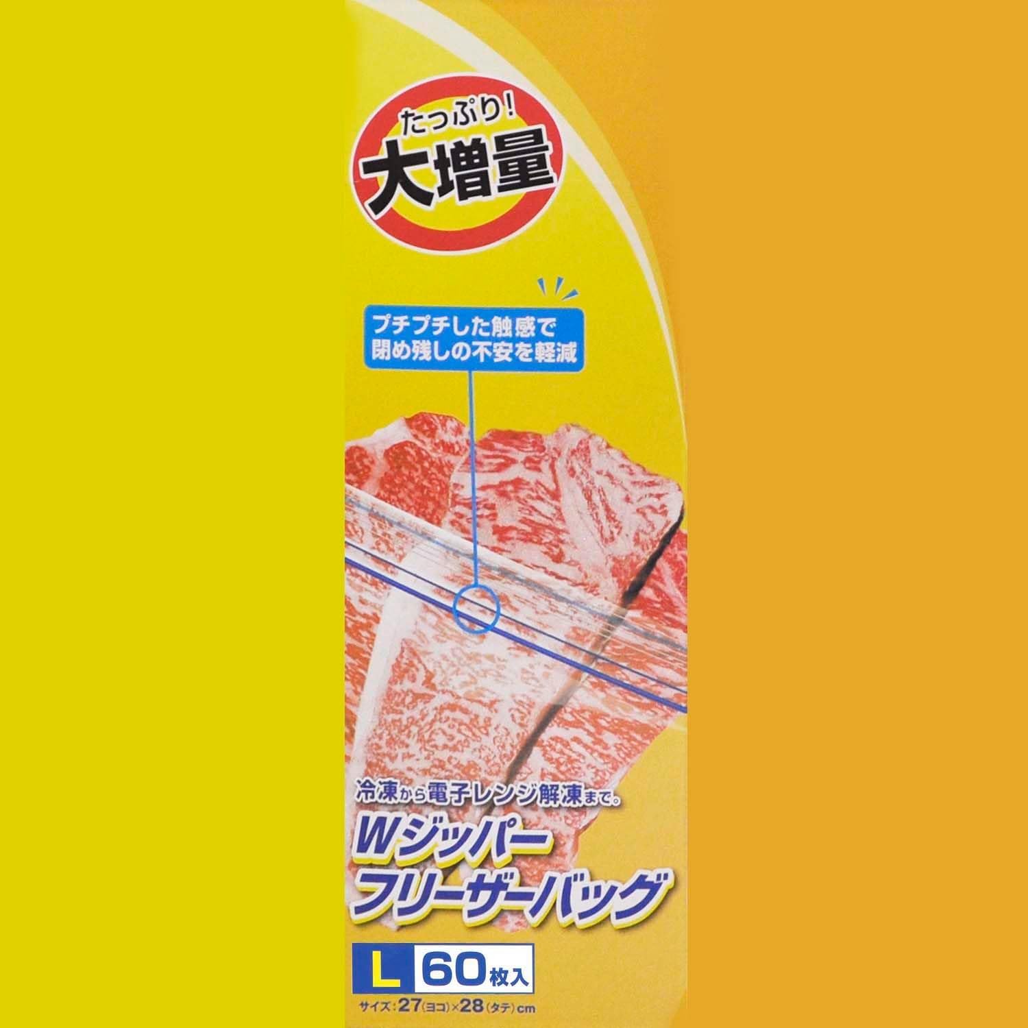大和物産 業務用 ダブルジッパー フリーザーバッグ L 60枚×2個セット 冷凍から電子レンジ解凍まで 食品衛生法適合 横27×縦28cm 厚さ0.06mm