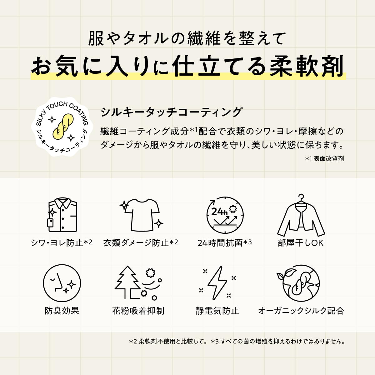 * シワ・ヨレ防止*² *²柔軟剤不使用と比較して
