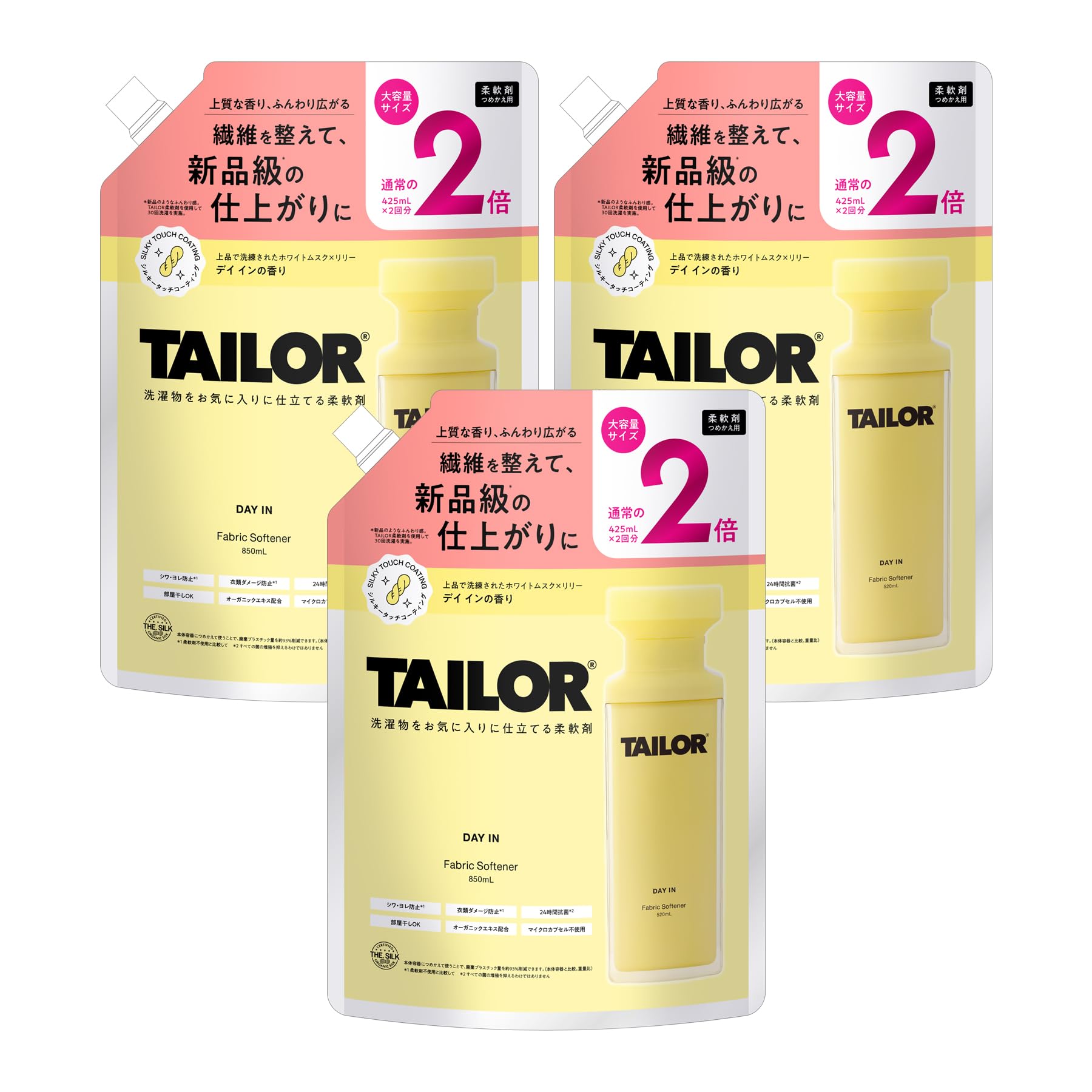 【公式】TAILOR テイラー 柔軟剤 つめかえ用 大容量2倍 DAY IN デイイン 3個セット 850ml×3