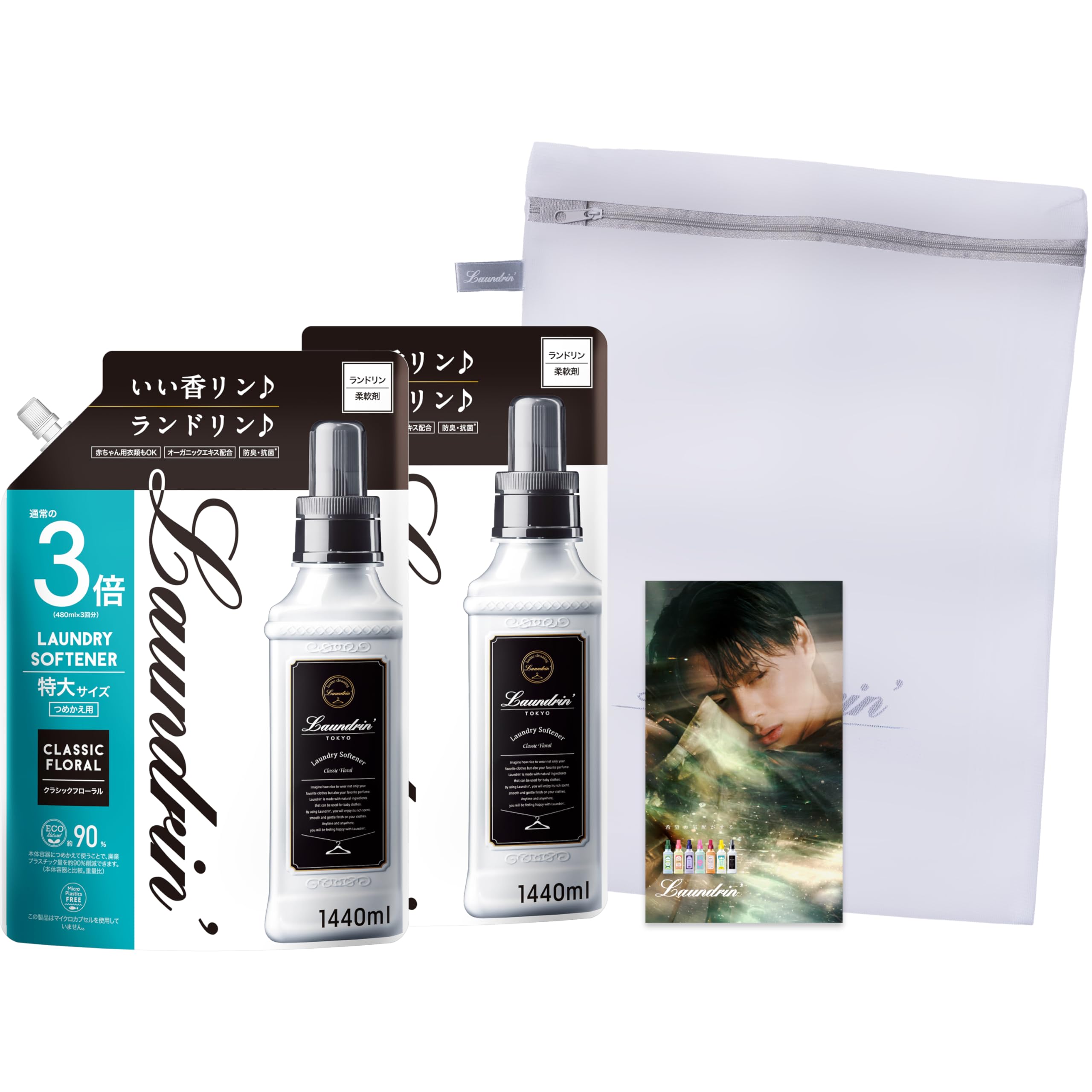 【洗濯ネット・オリジナルリーフレット】 Laundrin'(ランドリン) 液体 柔軟剤 クラシックフローラルの香り 詰め替え3倍 1440ml×2個