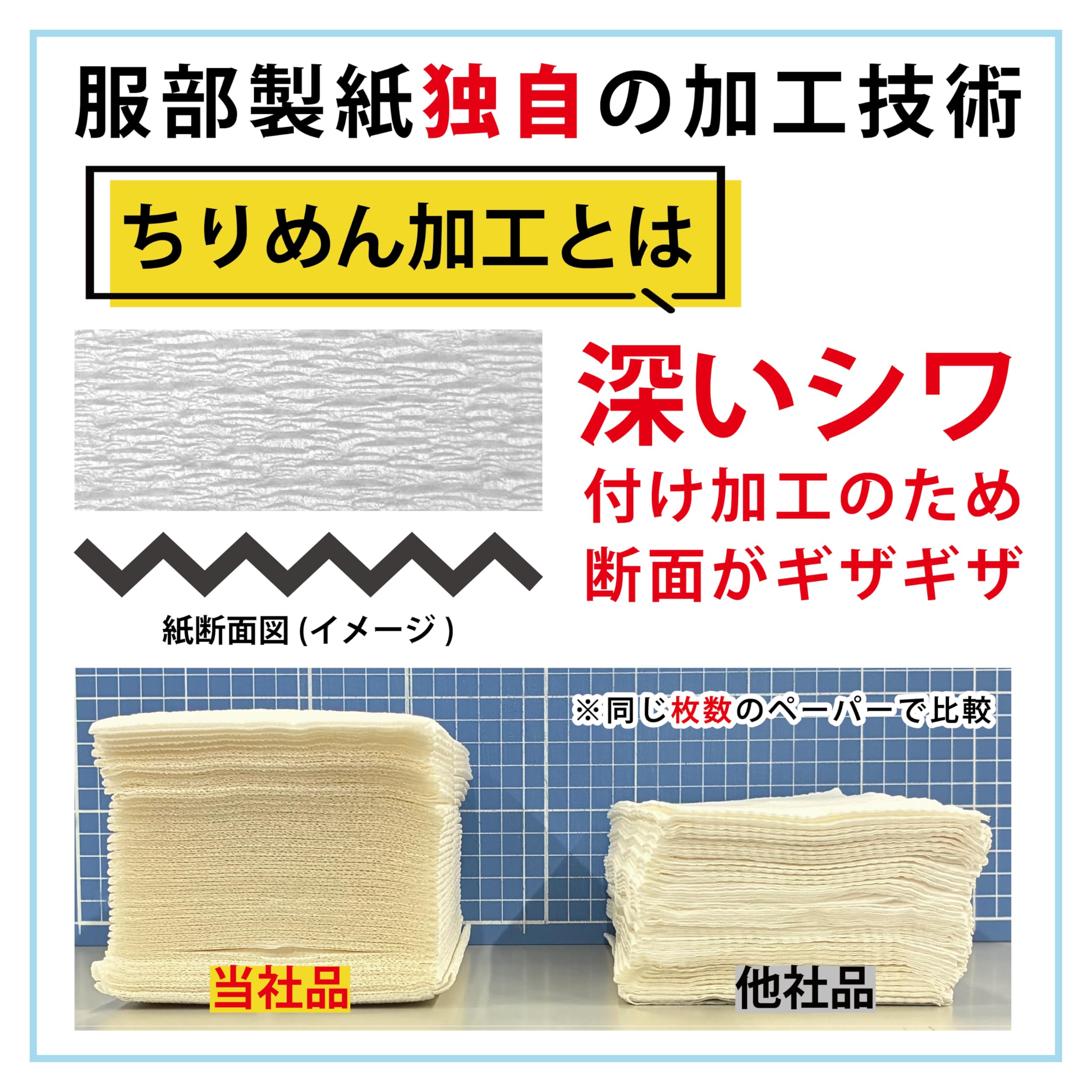 * 【吸水力抜群】服部製紙独自のちりめん加工によってできる、ソフトな手ざわりと吸収力の高さが特徴です。丈夫な紙質なので2枚取りの必要はありません。