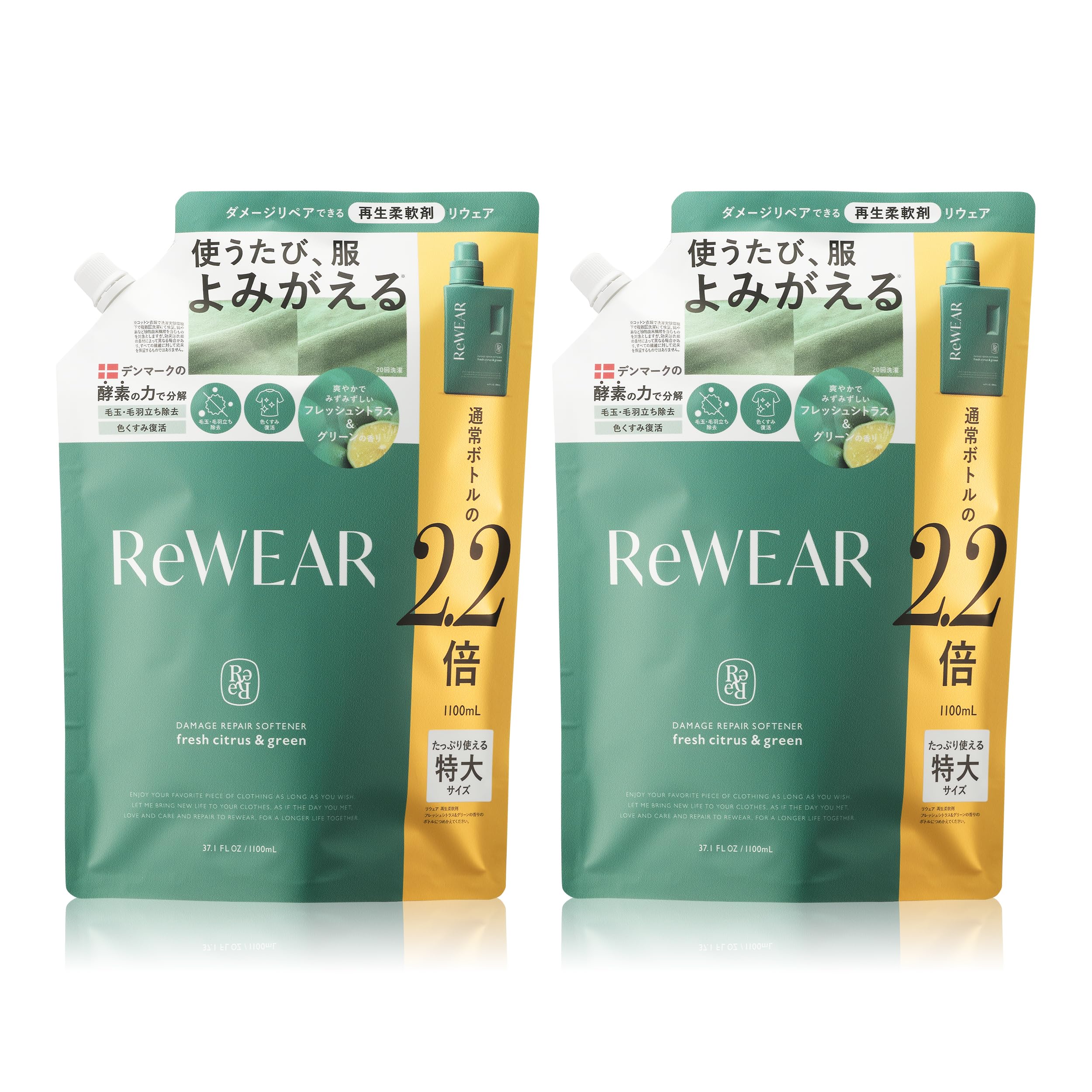 ReWEAR リウェア 再生 柔軟剤 大容量 詰め替え 2点セット フレッシュシトラス&グリーン 【通常ボトル2.2個分】