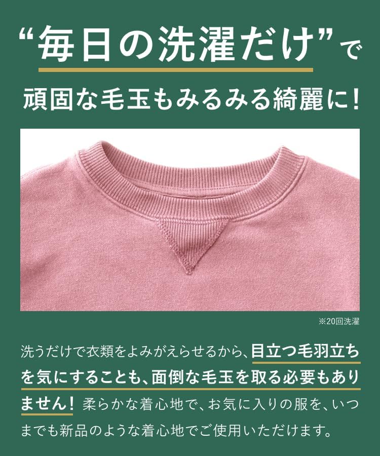 * 【毛玉・毛羽立ち除去】サステナ大国デンマークで開発された酵素成分配合で、毛玉や毛羽立ちを分解・除去します。