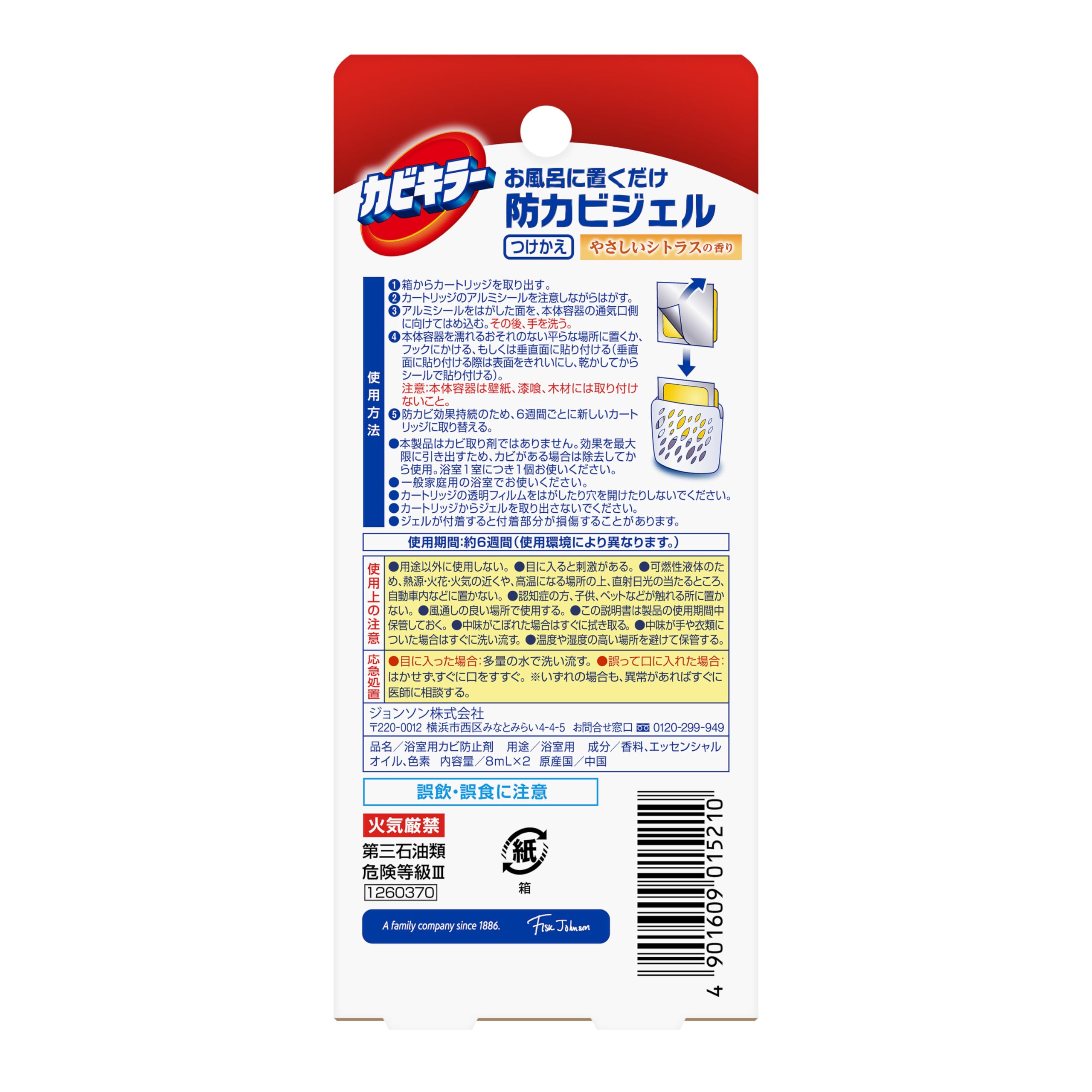 カビキラー お風呂に置くだけ防カビジェル やさしいシトラスの香り 付け替え用×2個セット(2P×2)手袋付き お風呂 浴室 掃除 まとめ買い