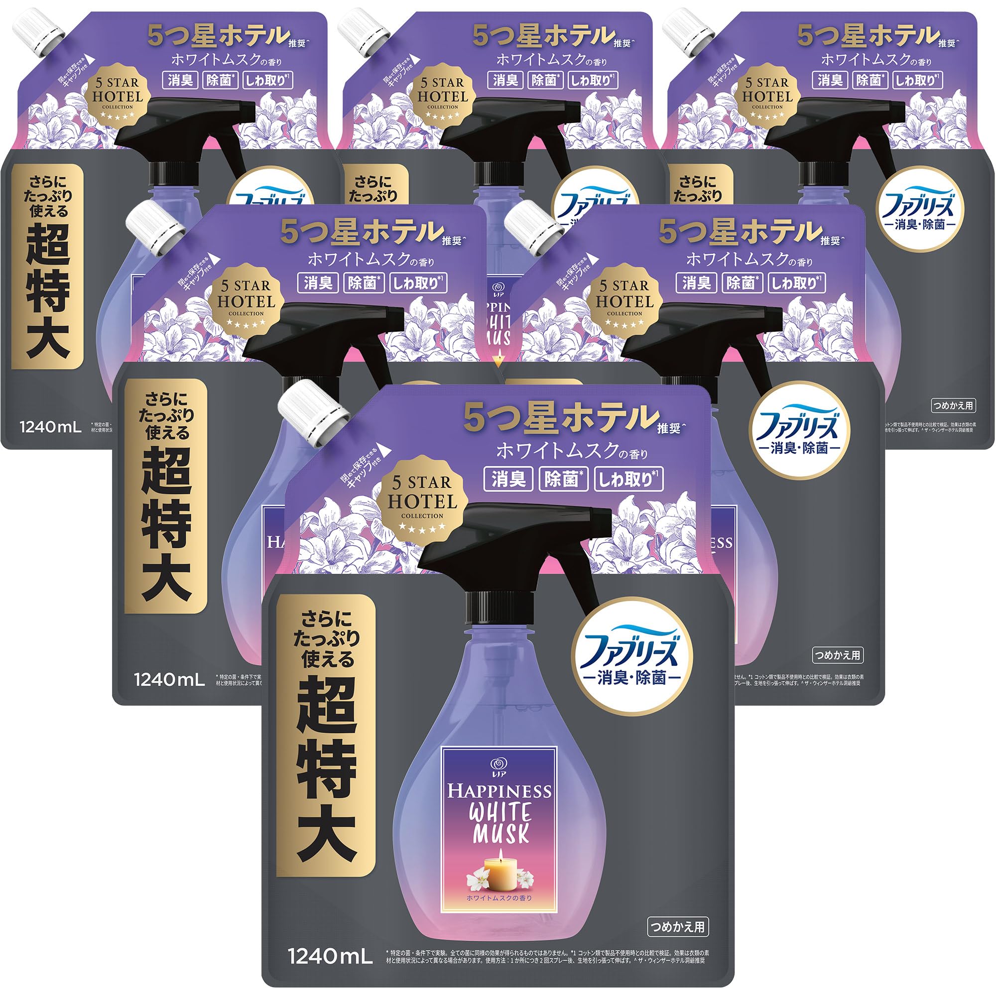 ファブリーズ レノアハピネスミスト 衣類・布製品用消臭スプレー ホワイトムスクの香り 消臭・除菌 5つ星ホテル推奨 詰め替え 1240mL×6袋 [大容量] [ケース品]
