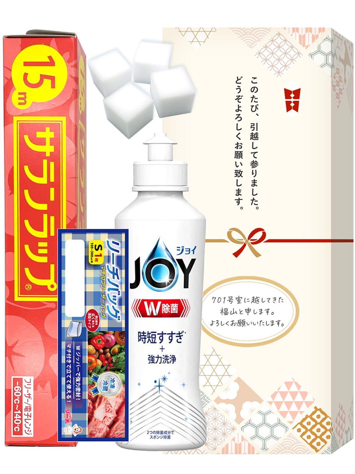 * 【中身は安心の有名ブランド】 中身は貰ったお相手が困らない、キッチングッズの消耗品4点セット性別・年齢にも左右されない、誰もが知っている有名ブランド商品を一つ一つ厳選してチョイスしております。旭化成社製の食品ラップやP&G社製の食器用洗剤ジョイなど、各分野で高シェアを誇る商品をセットにしています。