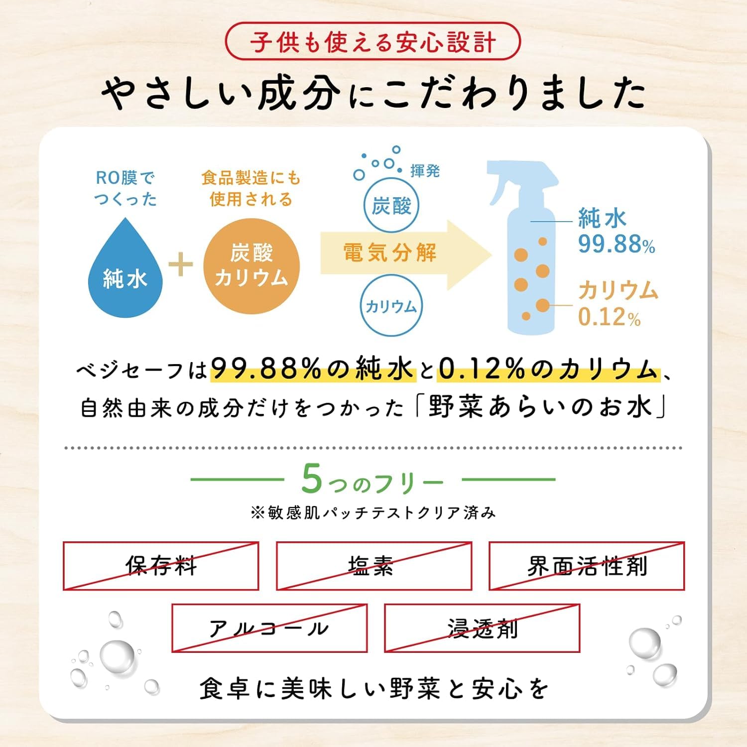 * 【ボトル6本分】残留農薬除去、防カビ剤除去 ベジセーフを使うことで、皮までおいしくフルーツ、野菜を食べられる!【SDGS】に繋がる!