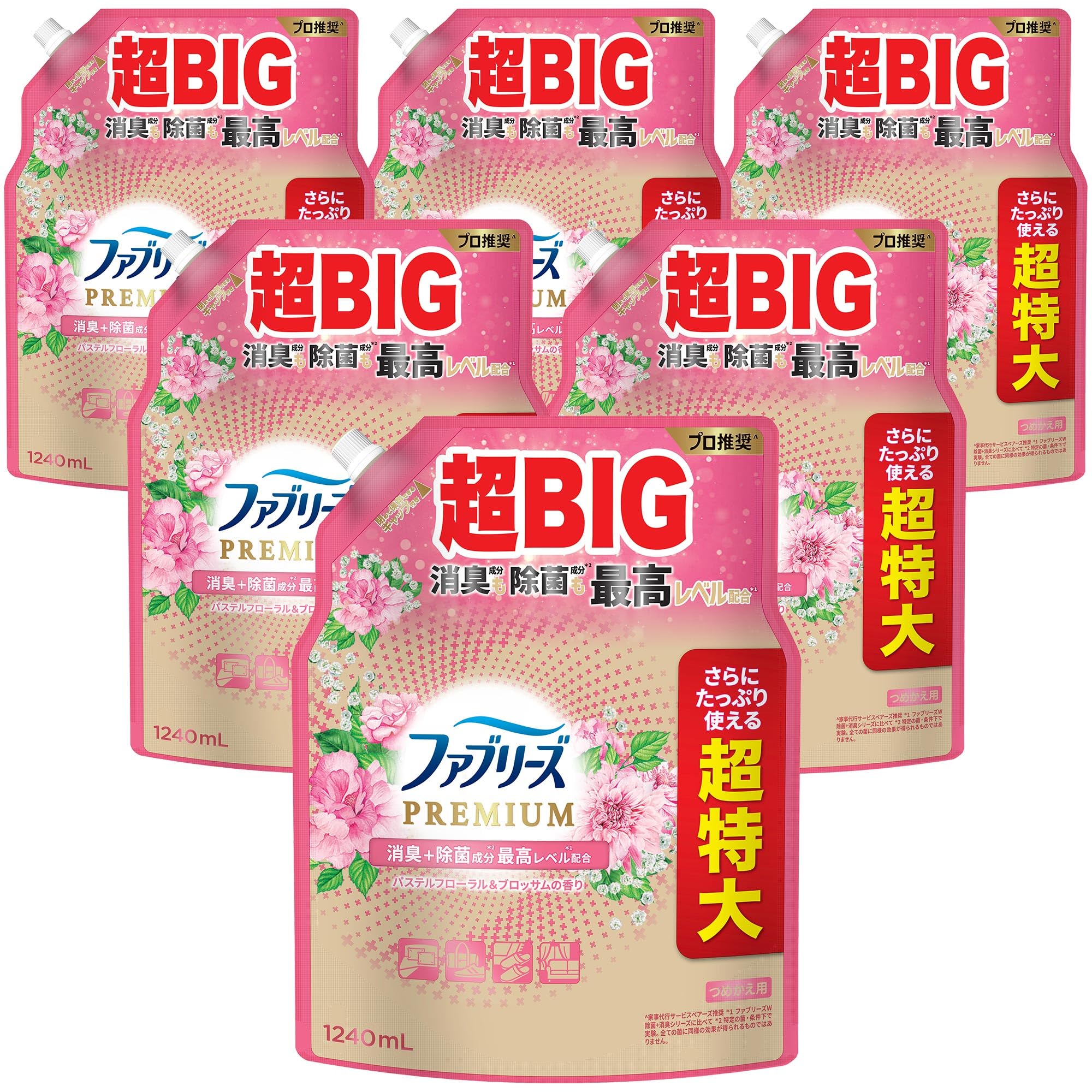ファブリーズ 消臭スプレー PREMIUM 消臭+除菌成分最高レベル配合 衣類・布製品用消臭剤 パステルフローラル&ブロッサムの香り 詰め替え 超特大 1240mL×6袋 [ケース品]