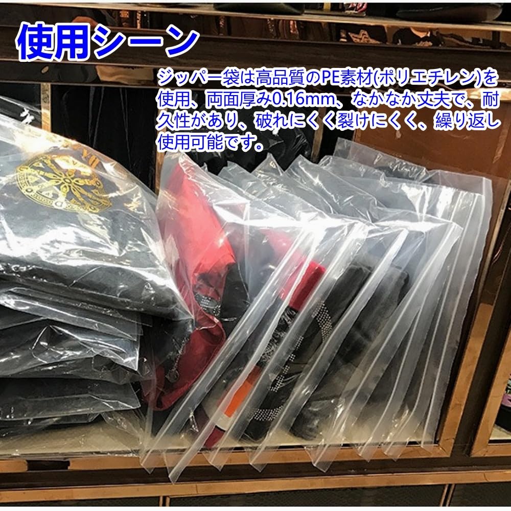 * ジッパー袋は高品質のPE素材(ポリエチレン)を使用、両面厚み0.16mm、なかなか丈夫で、耐久性があり、破れにくく裂けにくく、繰り返し使用可能です。枚数:5、10枚入り、特徴 ジッパー付き、極厚。