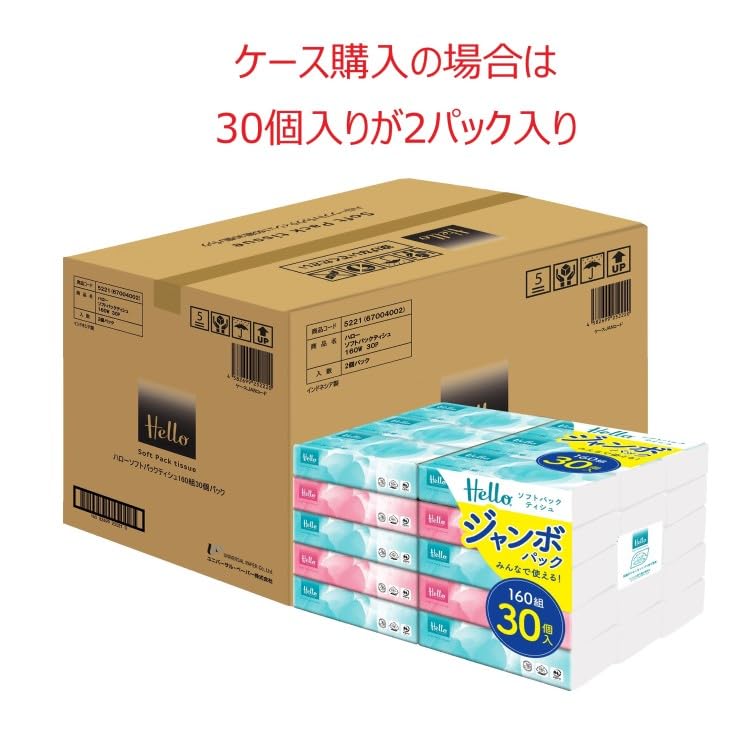 【ケース販売】ユニバーサル・ペーパー ハロー ソフトパックティッシュ 160組 30個1パック x 2パック入
