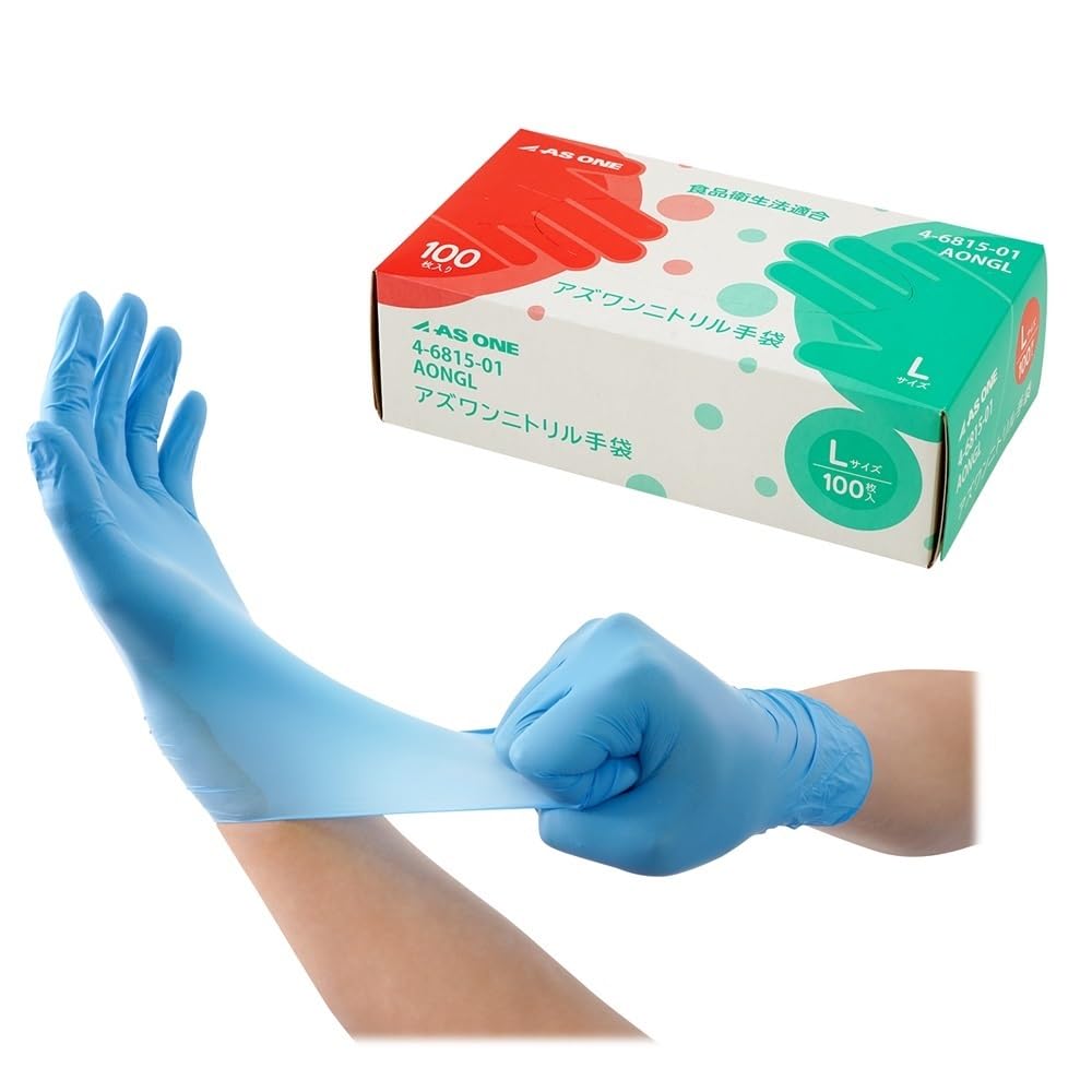 アズワン ニトリル手袋 粉無し Lサイズ 10箱(100枚入/箱×10) 病院採用 食品衛生法適合 左右兼用 指先エンボス 使い捨て タッチパネル操作可