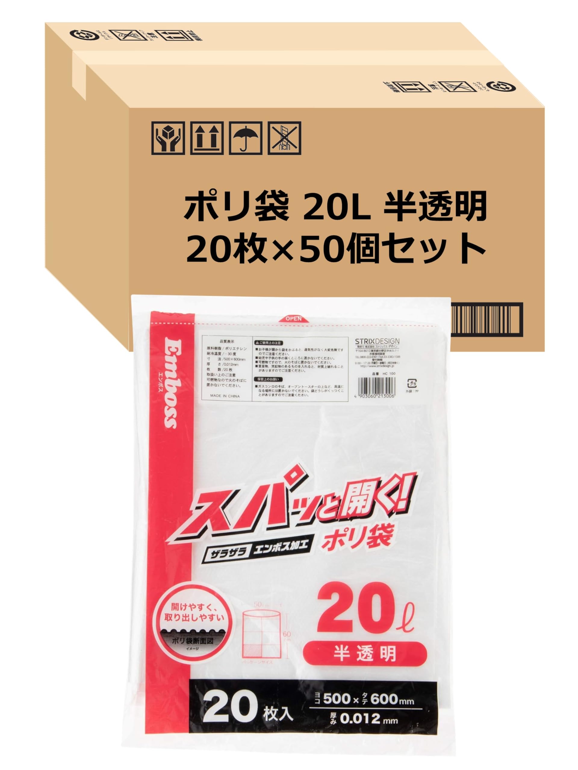 ストリックスデザイン ゴミ袋 スパッと開く! ポリ袋 20L 1000枚 (20枚×50セット) 半透明 エンボス加工 開けやすく取り出しやすい HC-100