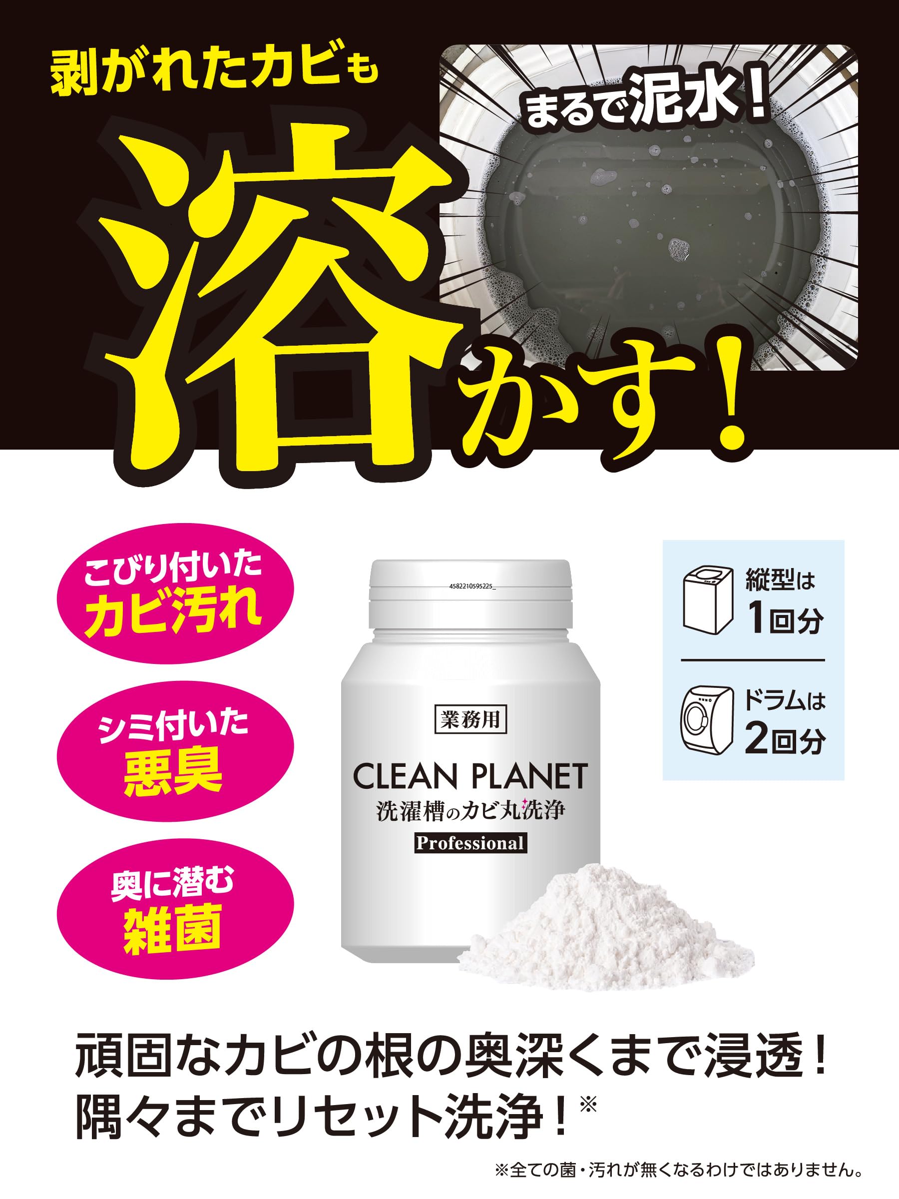 クリーンプラネット 洗濯槽のカビ丸洗浄 プロフェッショナル【縦型・ドラム式】 洗濯槽クリーナー 超強力タイプ 【剥がれたカビも溶かす】 1回分