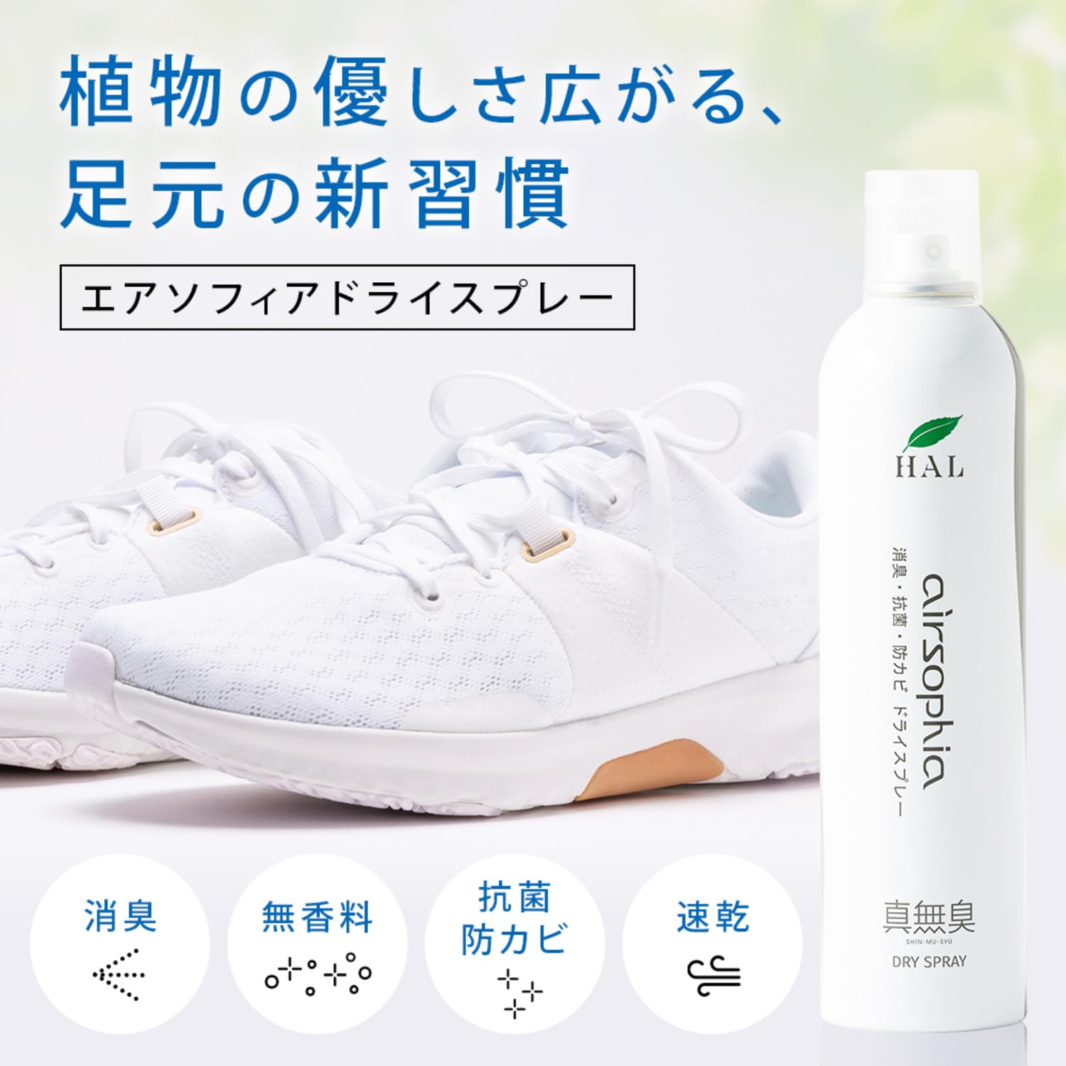 ハル・インダストリ エアソフィア ドライスプレー 420ml 無香料 強力消臭 靴 スニーカー ブーツ 靴下 ストッキング スリッパ 玄関マット ニオイ 消臭 防カビ 抗菌