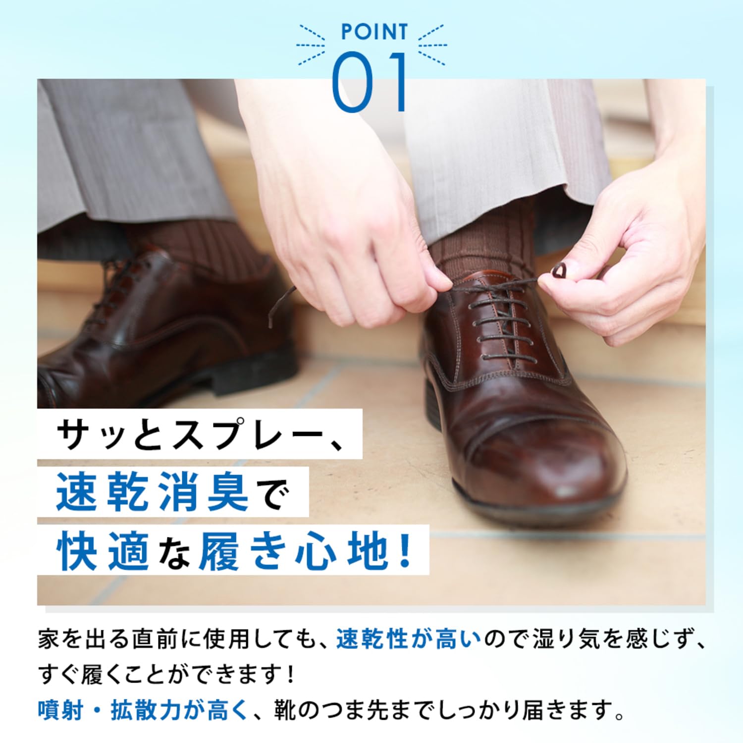 * 【靴の消臭に大活躍!】抗菌、防カビ成分がニオイの発生を抑制。シューっと2~3秒ほど靴にスプレーするだけで、気になるニオイが無臭化されます。無臭だからニオイが混ざらず、不快なニオイを感じません。また、速乾性が高いので外出直前に使用しても湿り気を感じません。靴だけでなく、帽子、グローブ、玄関マット、カーペット、ラグなどにもお使いいただけます。