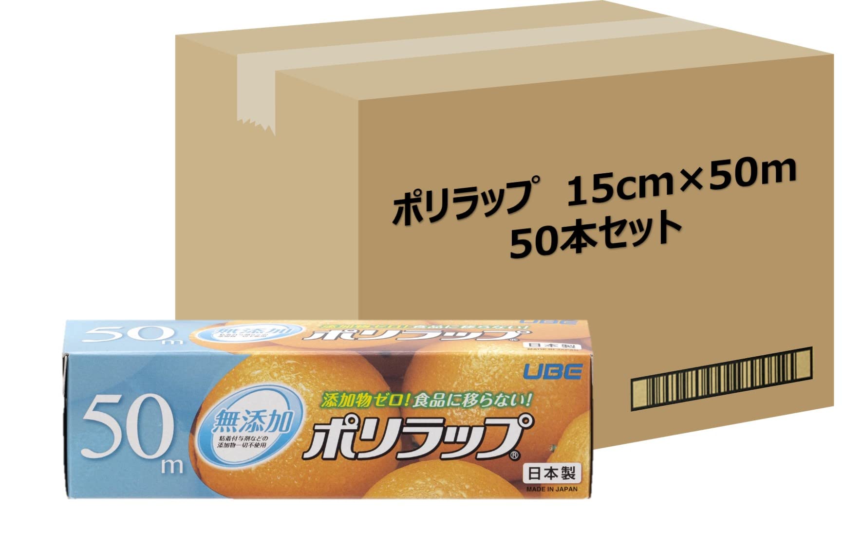 宇部フィルム ポリラップ キッチンラップ 食品用ラップ 15cm×50m 50本セット[ケース販売] 無添加 添加物ゼロ 赤ちゃんにも安心 離乳食の保存に 防災 日本製