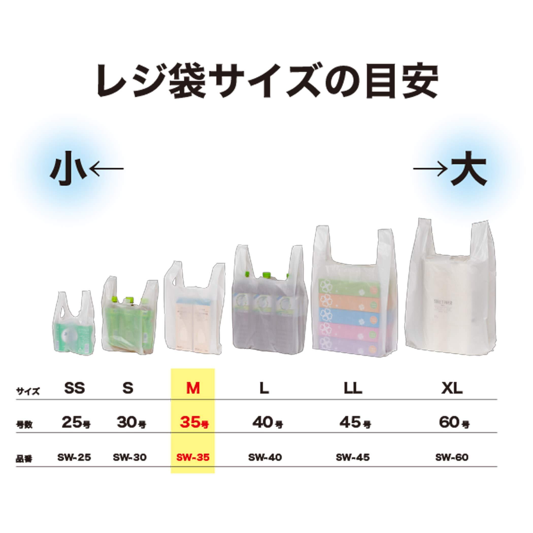 ケミカルジャパン ゴミ袋 レジ袋 乳白 半透明 1000mlのペットボトルが2.3本入るサイズ東日本 20号 西日本 35号 M 500枚 (100枚×5個セット) 手さげ ポリ袋 SW-35