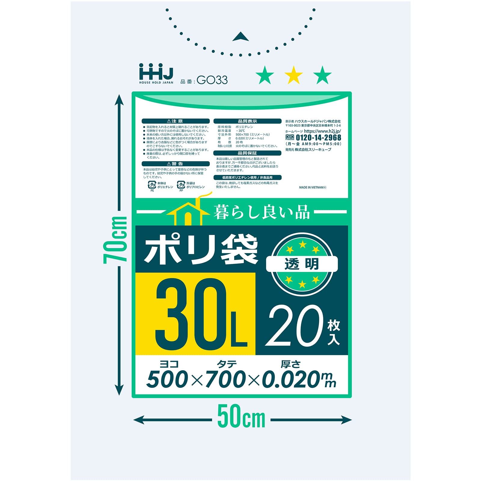 スリーキューブ ゴミ袋 暮らし良い品 ポリ袋 (ケース販売) 透明 30L 20枚入×60個セット GO33-60