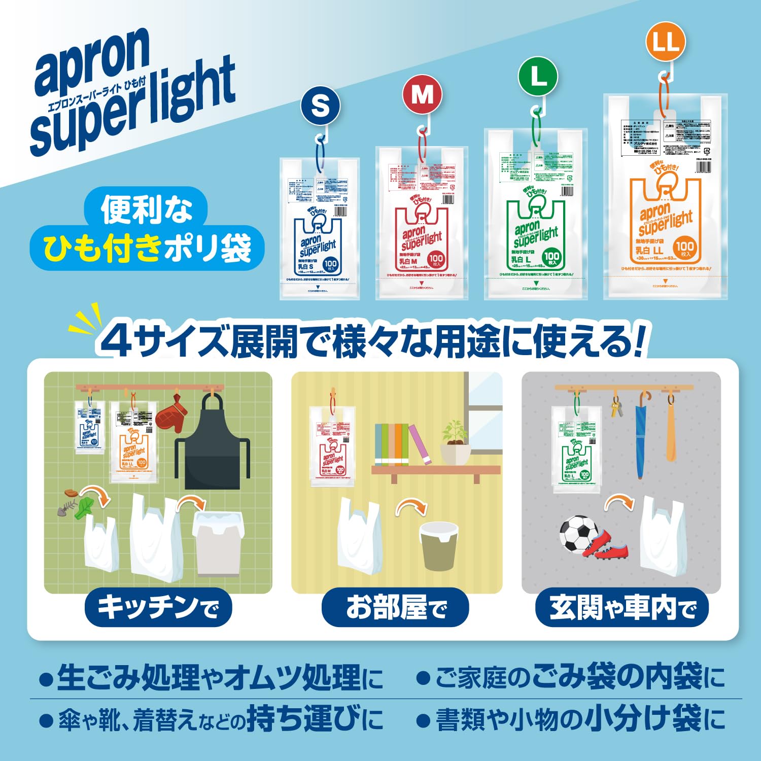 オルディ レジ袋 取っ手付きポリ袋 L 乳白 100枚入×2個セット 吊り下げて使用できるひも付き エプロンスーパーライト ESLH-W40-100