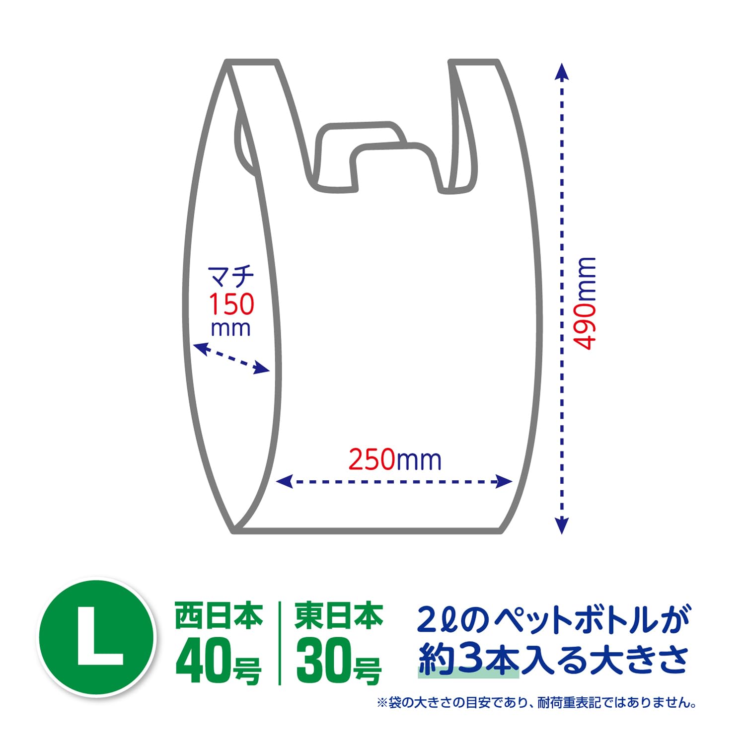 * 本体サイズ(1枚あたり):縦49cm×横25cm×マチ幅15cm 厚み0.014mm(東日本30号/西日本40号)