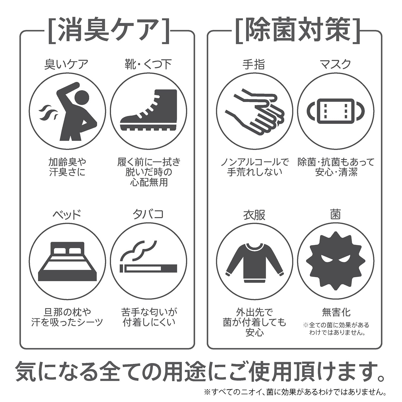 * 【使用対象】毎日洗えない寝具 枕 ソファ スーツ 衣装 ウィッグ ヘルメット 車内 の消臭除菌