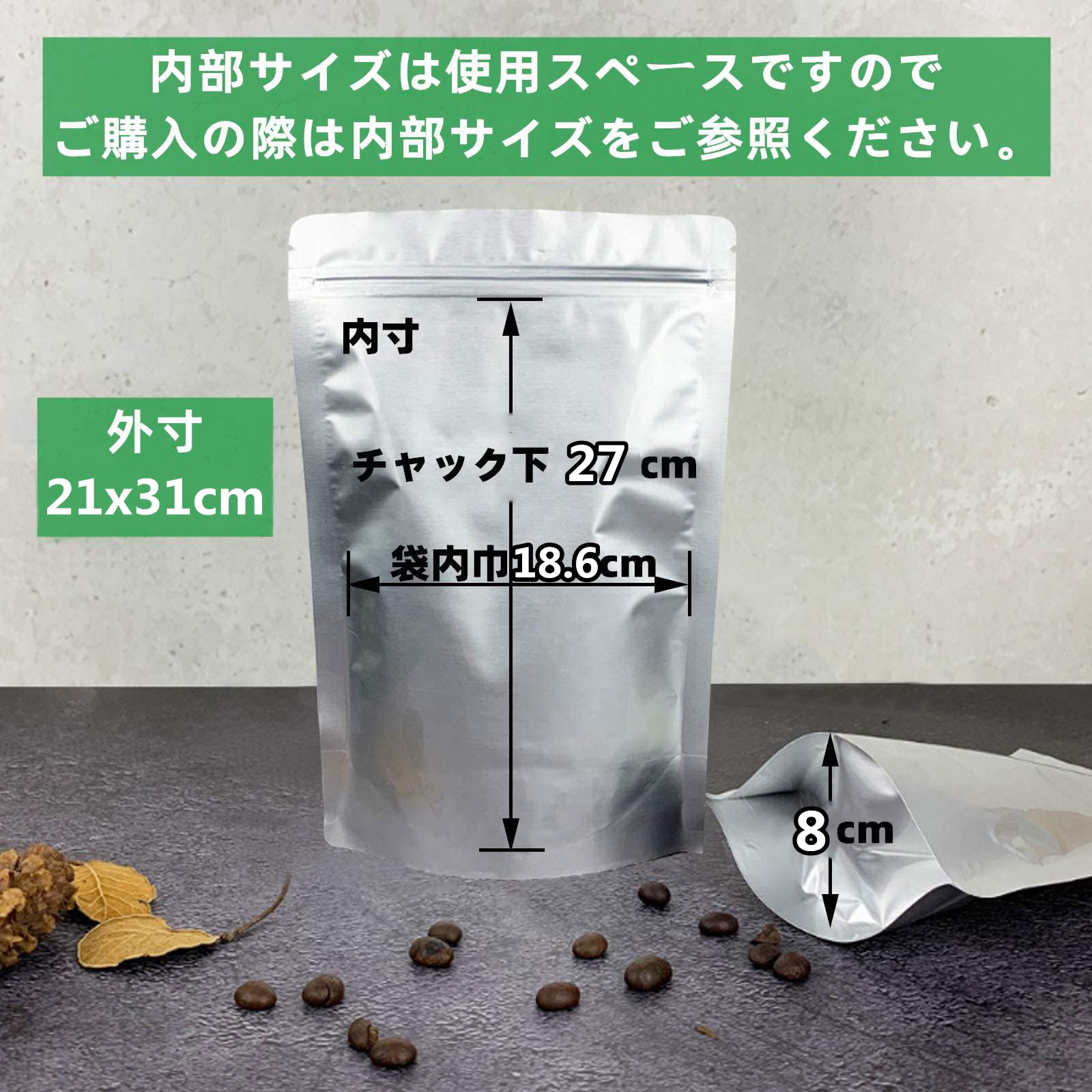 20枚入 アルミ ジップ袋 自立 大 コーヒー豆 保存袋 小分け 袋 スタンディングタイプ 耐熱 遮光 防臭 (21x31cm-20枚)
