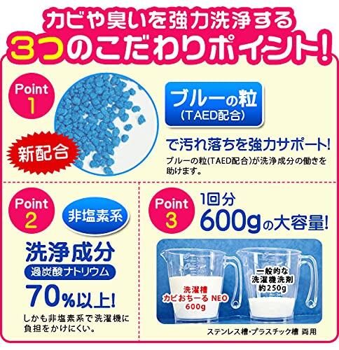 * 【商品仕様】対応洗濯機/縦型専用、内容量/600g、セット内容/3個組、材質・成分/過炭酸ナトリウム、炭酸ナトリウム(26%)、緑茶エキス、活性剤、液性/アルカリ性、用途/洗濯槽の洗浄、使用量目安/10kgサイズまでの洗濯機に全量、原産国/日本