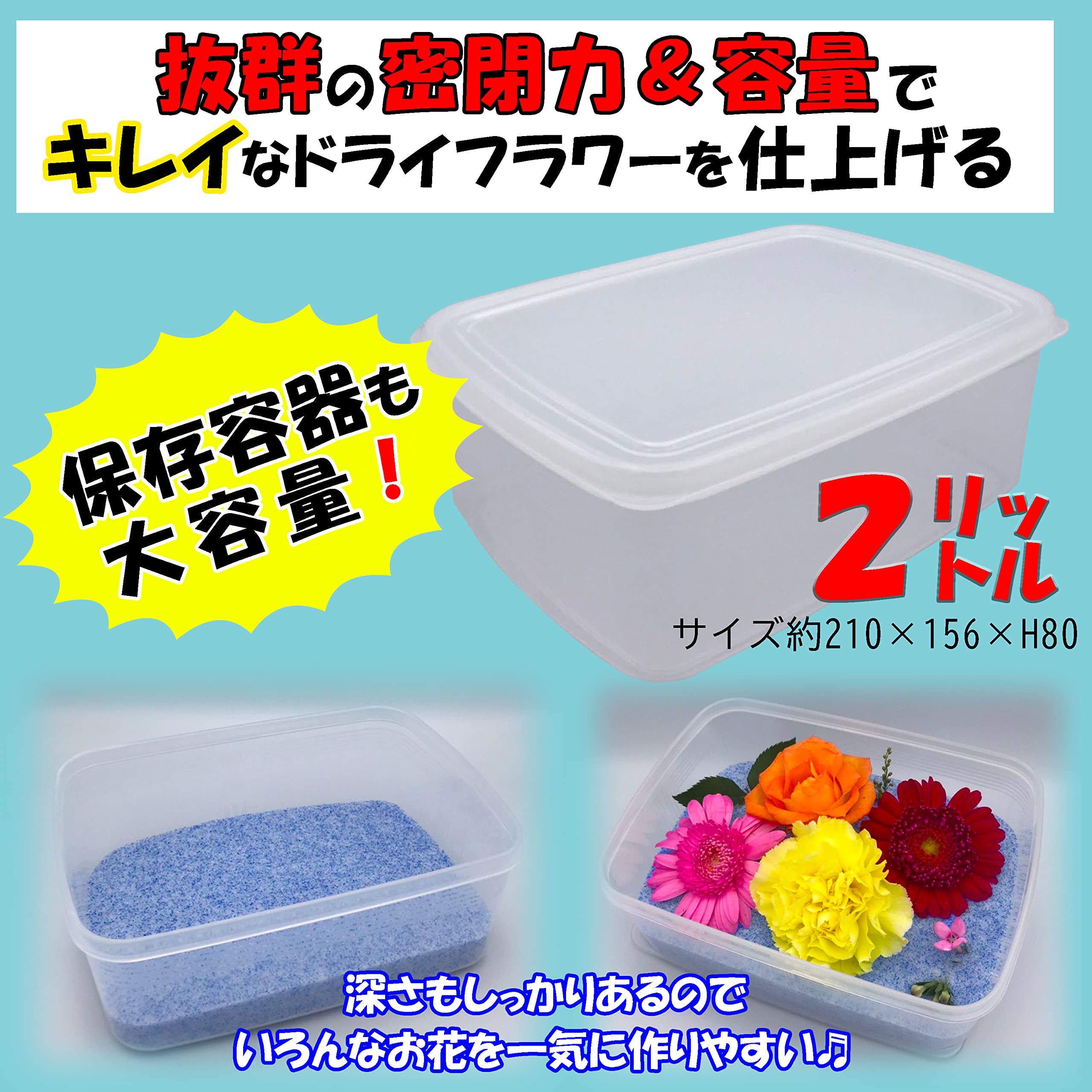 ドライフラワー用乾燥剤シリカゲル1kg 【容器セットNew!】専用ふりかけボトル(740ml)+大容量保存容器(2000ml)