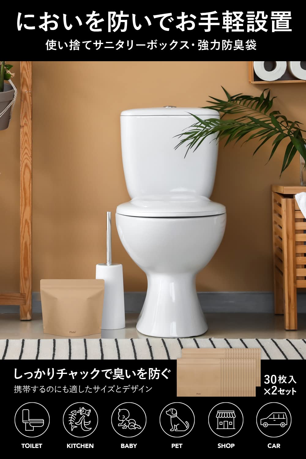 Fluto 強力防臭袋 チャック付き サニタリーボックス 使い捨て 消臭袋 ゴミ袋 Mサイズ ナチュラル 30枚入×2