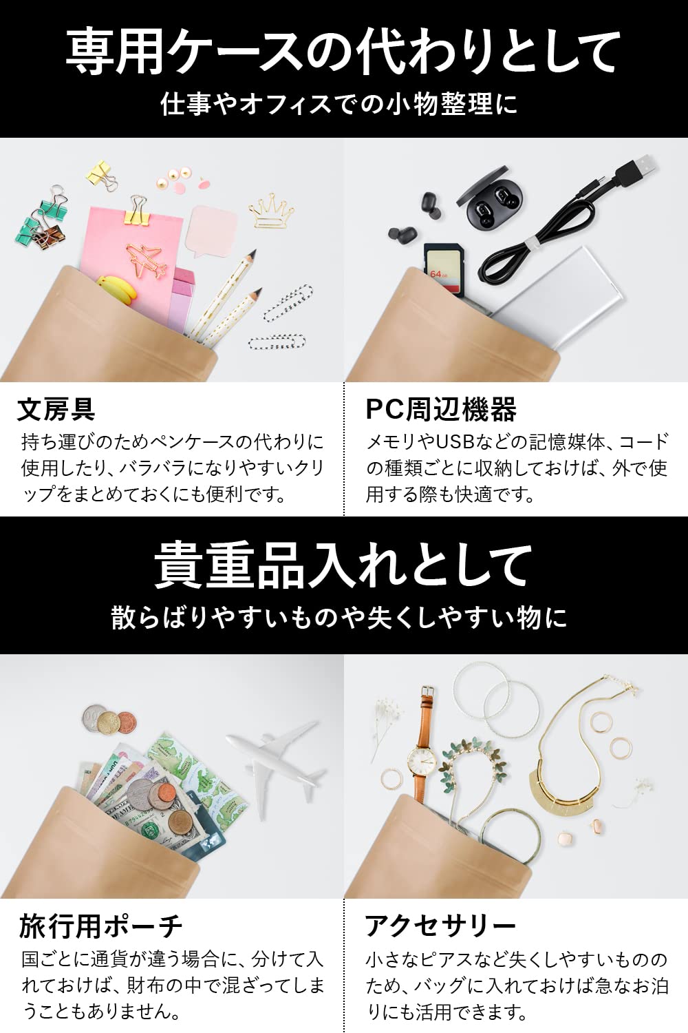 * エチケットケースとして使用した布ナプキンや下着・靴下入れとしてはもちろん、コスメ収納にメイクポーチとして使用したり、アクセサリーケースや小分け袋にもぴったり。