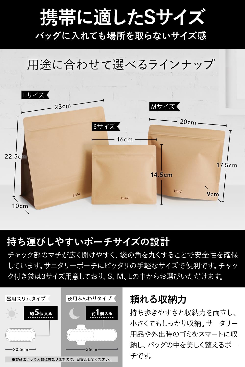Fluto 強力防臭袋 チャック付き サニタリーポーチ 使い捨て 携帯用 ゴミ袋 Sサイズ ナチュラル 30枚入×2