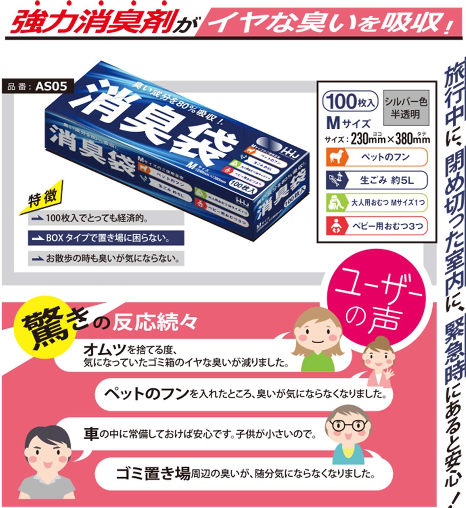 ハウスホールドジャパン ポリ袋 消臭袋 横23×縦38cm 100枚入×3セット グレー 厚み0.020mm 高密度ポリエチレン 消臭機能付き 1枚ずつ取り出せる ボックスタイプ AS05