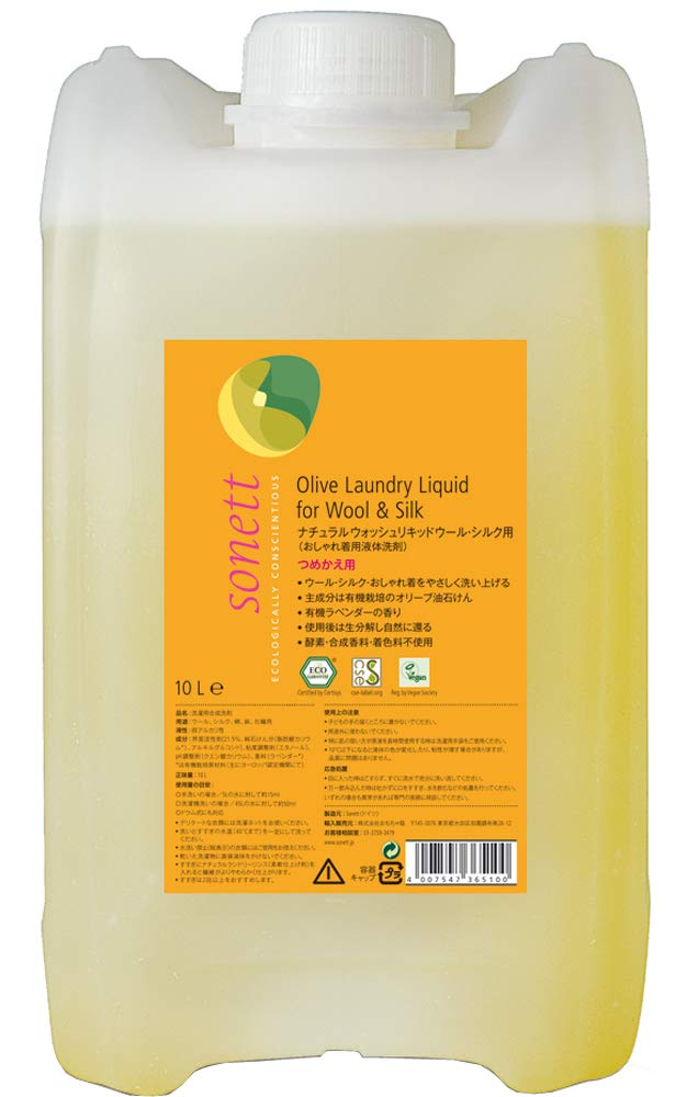 sonett ソネット 洗濯用洗剤 ウォッシュリキッド ウール シルク用 液体洗剤 おしゃれ着用 ラベンダー 大容量 詰替 10L ポンプ別売 肌にやさしい 敏感肌 オーガニック 自然由来 SNN3651 | [限定] まとめてお得便