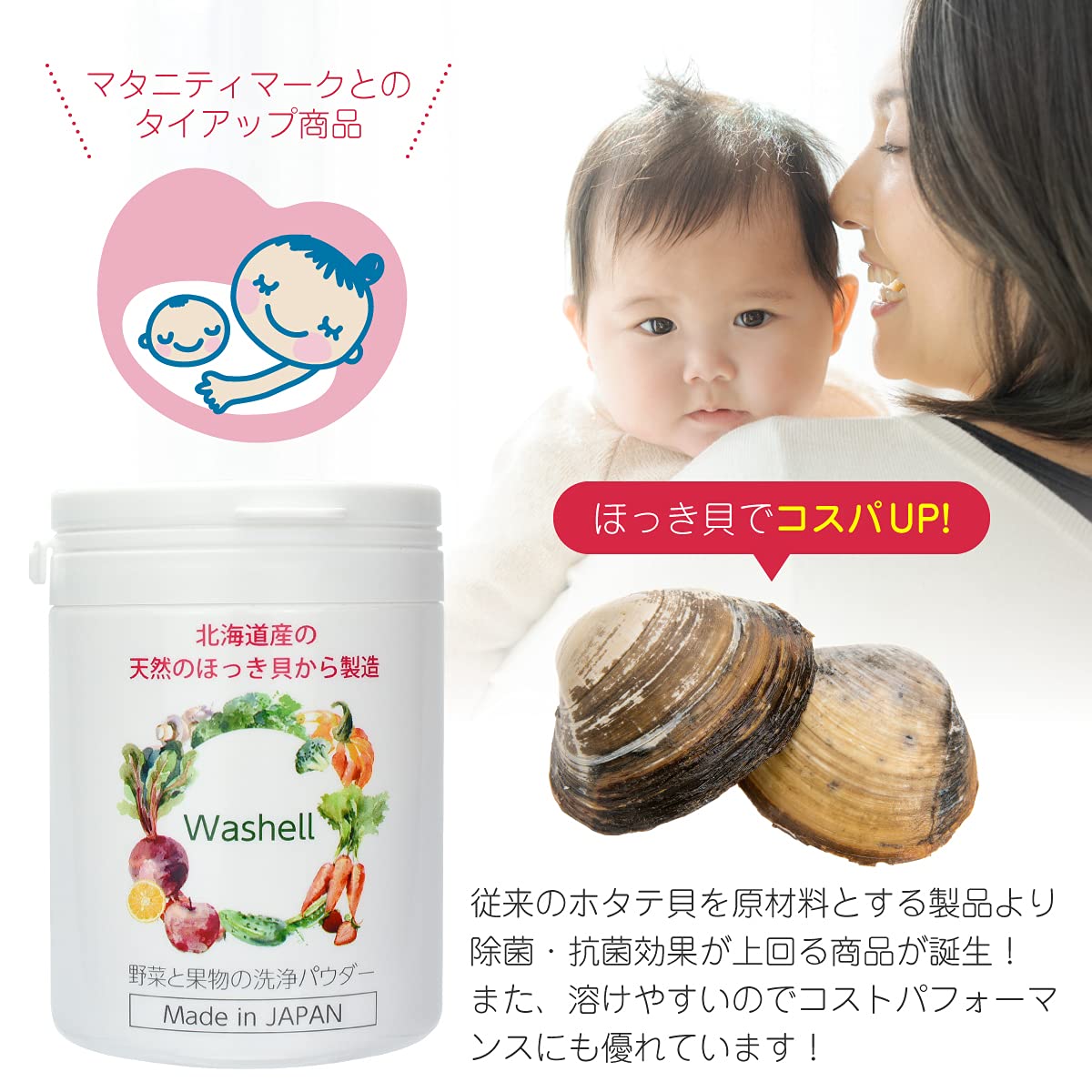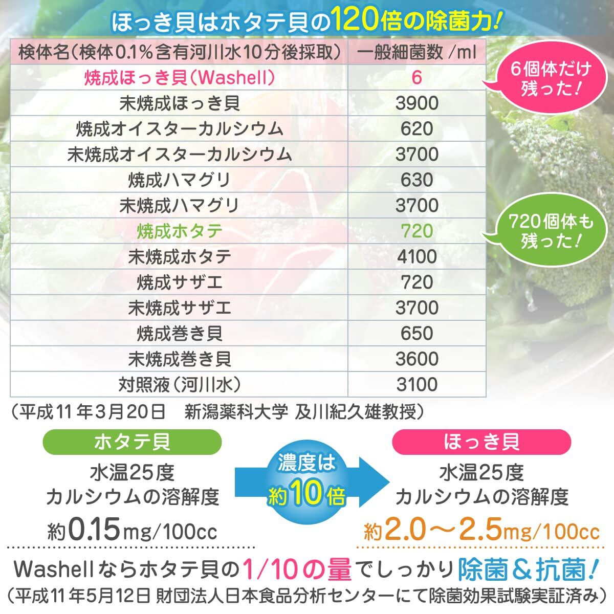 Washell (ウォッシェル) ホタテ貝より効果のある ほっき貝から出来た 野菜 果物 洗浄 除菌 鮮度保持 パウダー (本体5個)