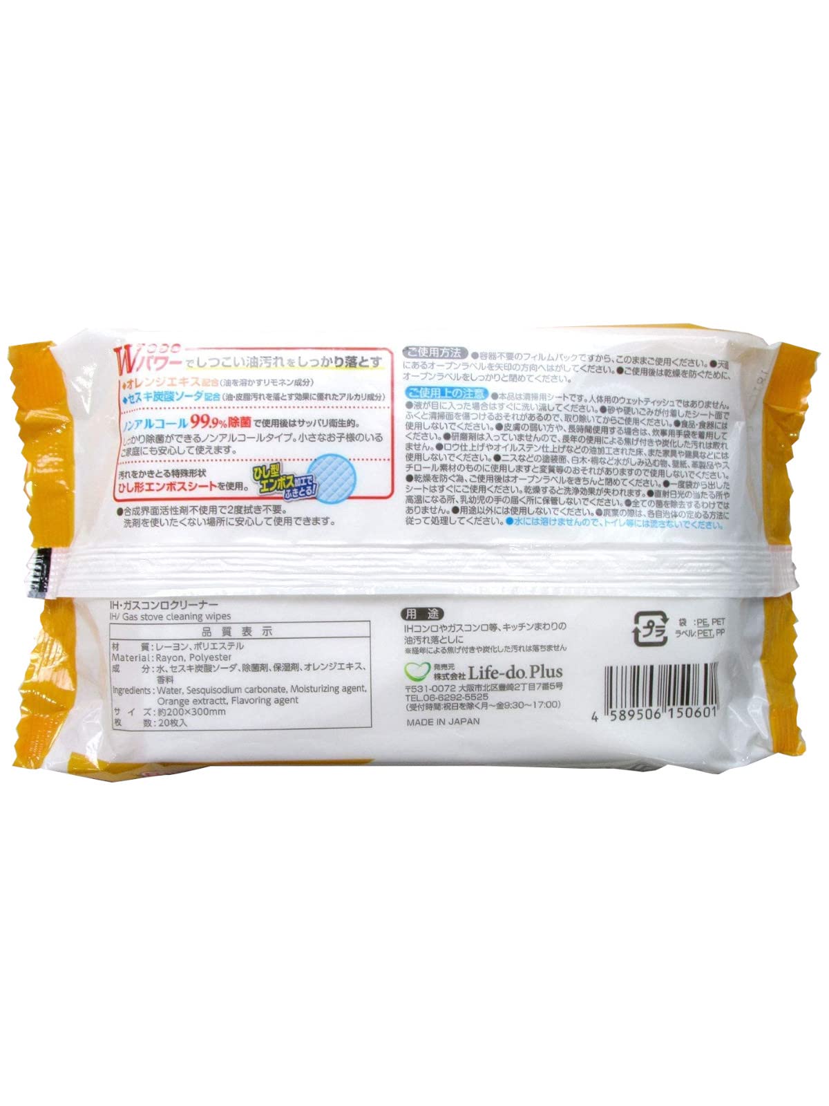 ライフ堂(Lifedo) クリンクル 掃除シート ウェットシート IH・ガスコンロクリーナー 20枚×30個入 【ケース販売】 セスキ炭酸ソーダ配合 オレンジエキス配合 ノンアルコール 99%除菌 LD-604