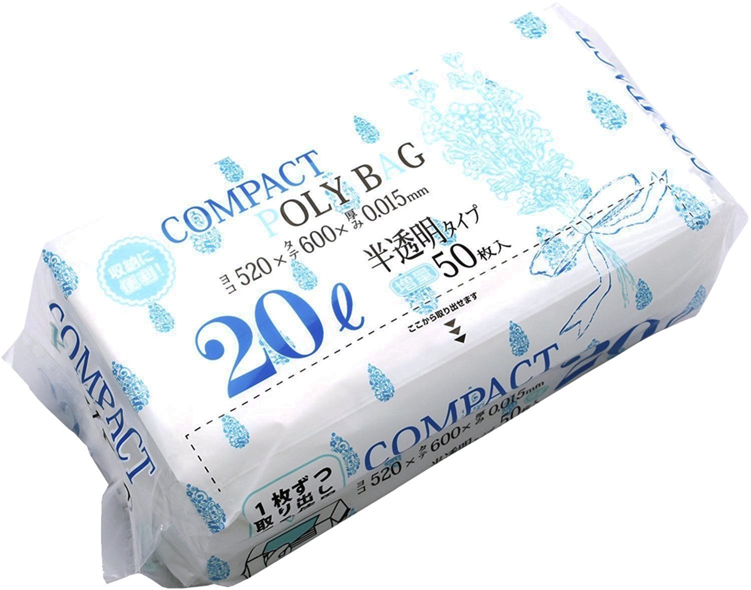 ハウスホールドジャパン ポリ袋 コンパクトポリ袋 20L 50枚入×30セット ケース販売 半透明 厚み0.015mm 高密度ポリエチレン 1枚ずつ取り出せる コンパクトパッケージ 業務用 KJ20
