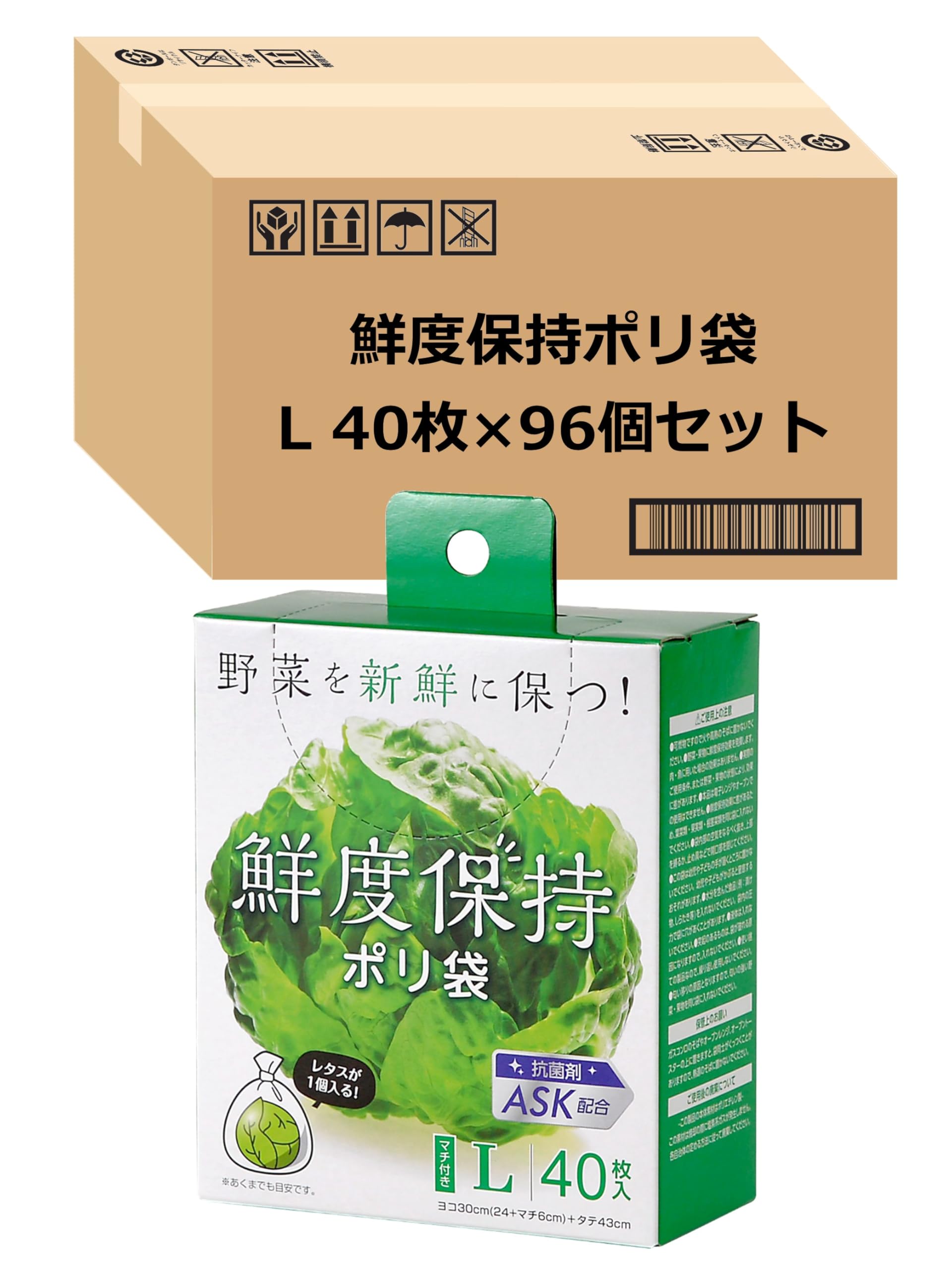 ストリックスデザイン 鮮度保持ポリ袋 Lサイズ 3840枚 (40枚×96個セット) 半透明 43×24cm マチ6cm 厚み0.009mm 抗菌剤配合 マチ付き 野菜 果物 新鮮に保つ SA-097
