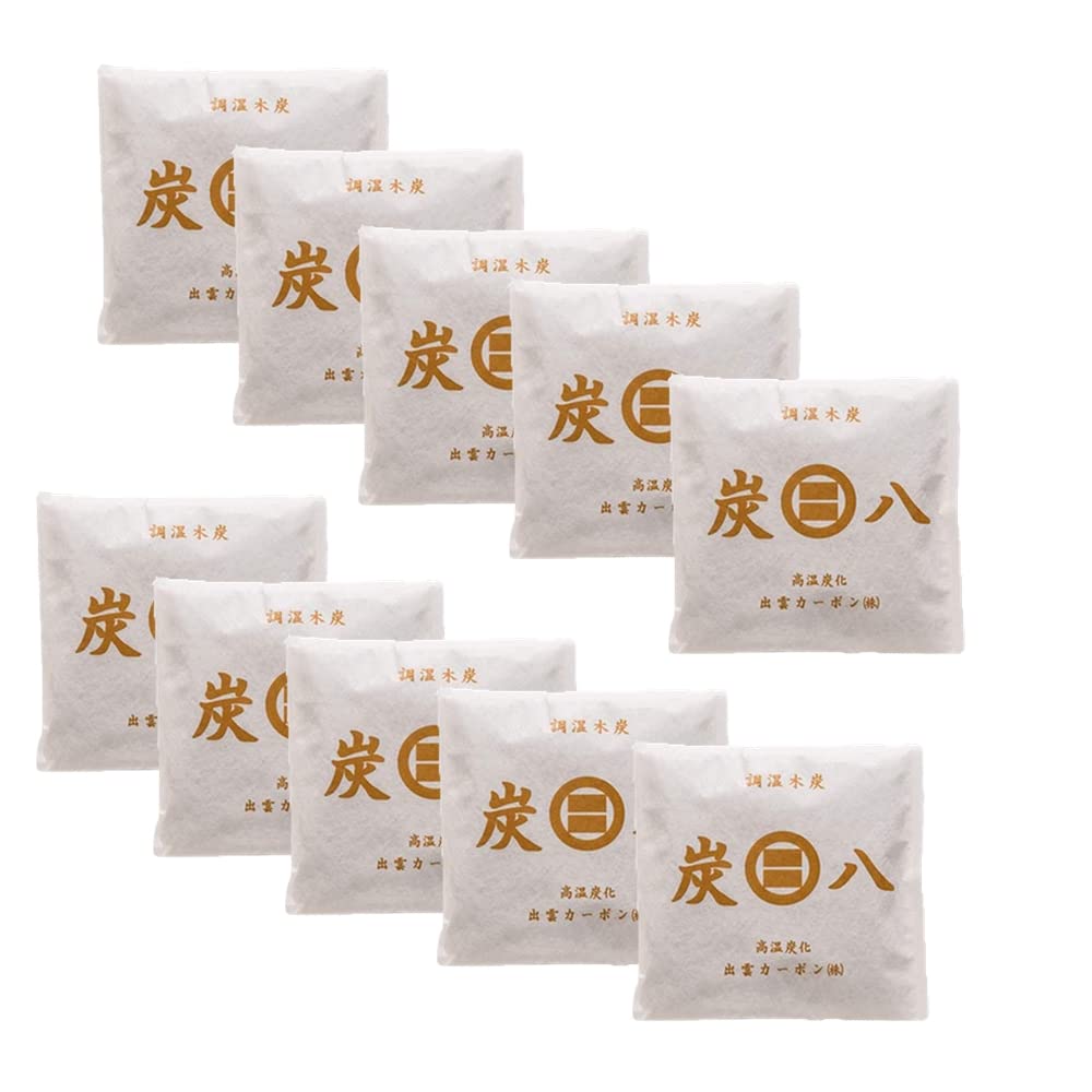 出雲カーボン 炭八 スマート小袋 10袋セット ホワイト (19cm×19cm×厚さ2.5cm 0.4L)調湿木炭 除湿 湿気 対策