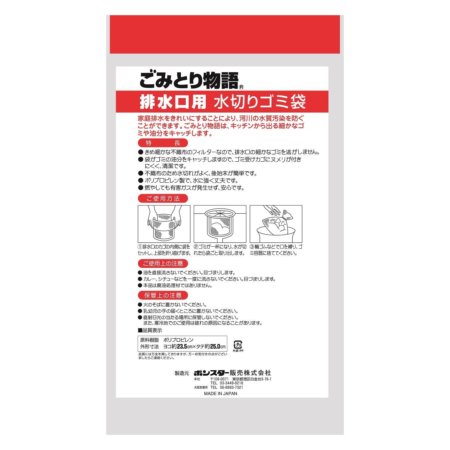 ボンスター 水切りゴミ袋 ごみとり物語 排水口用 スーっと水はけ 油分もキャッチ ヌメリをふせぐ お徳用 20枚入り ×10個セット