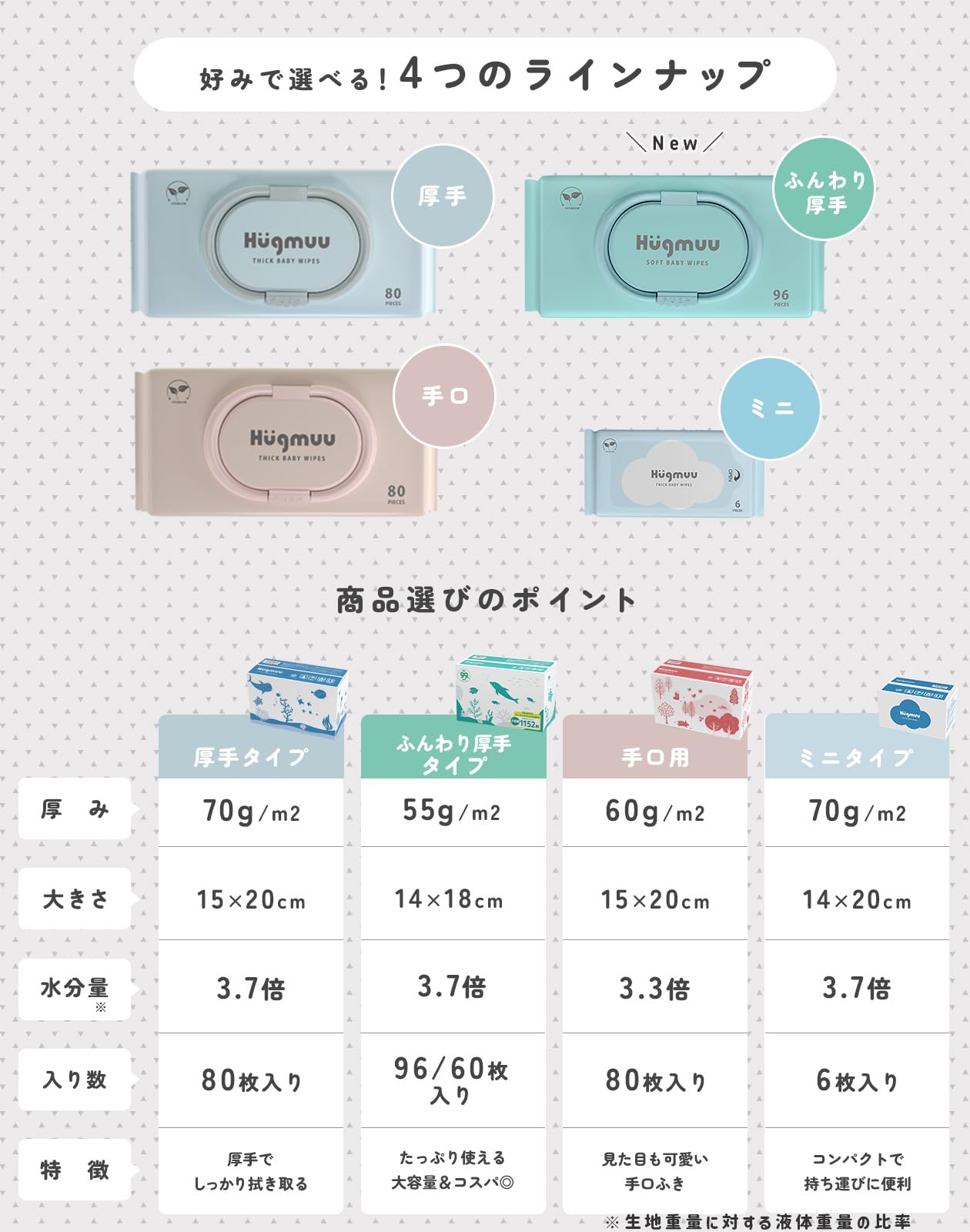 Hugmuu (ハグムー) おしりふき ミニ 携帯用 おしり拭き ミニサイズ 持ち運び 厚手 お出かけ用 手のひらサイズで超コンパクト 水分99% 72枚(6枚×12個)