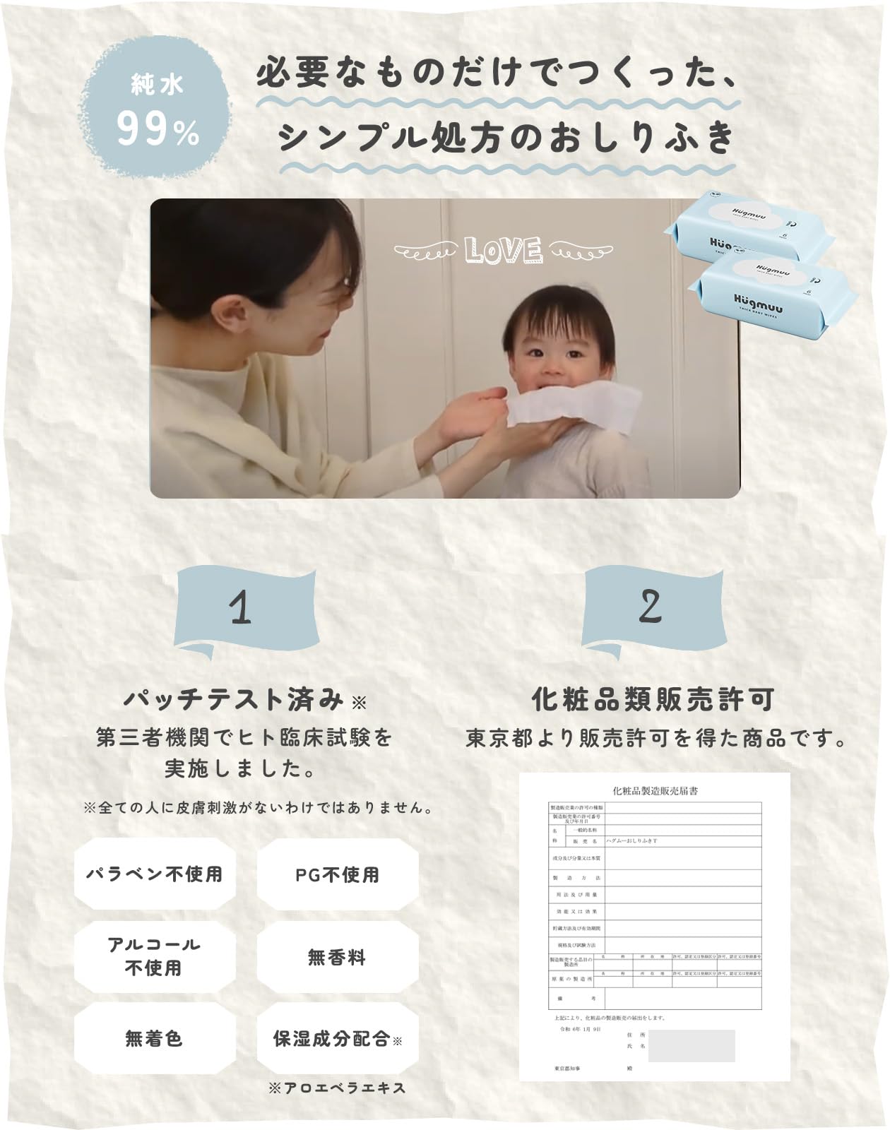 * 【純水99%・お肌にやさしい】成分は純水99%で水に近いおしりふきです。無添加で赤ちゃんにも安心して使うことができます。