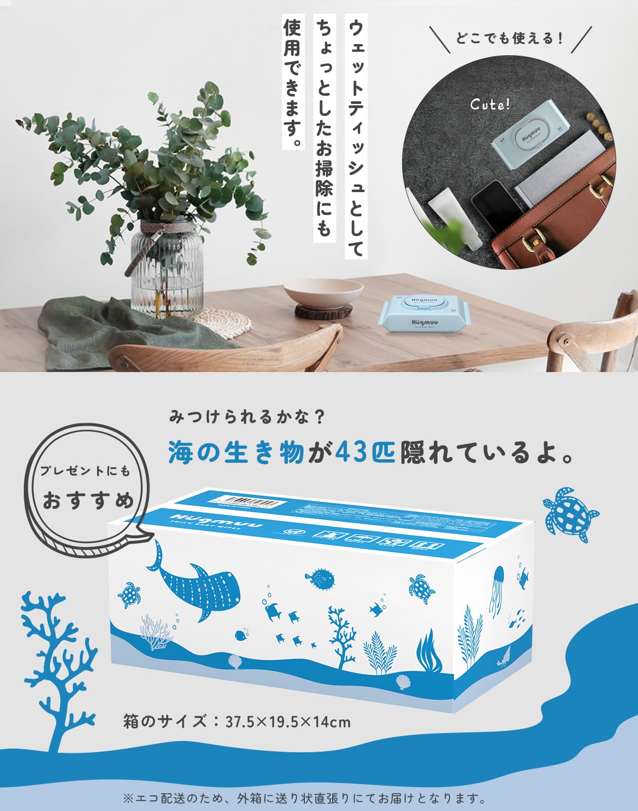 Hugmuu (ハグムー) おしりふき 厚手 おしり拭き おでかけ 蓋付き お尻拭き 赤ちゃん 持ち運び ウェットティッシュ 出産祝い タオルのような厚み 水分99% 270枚(30枚×9個)