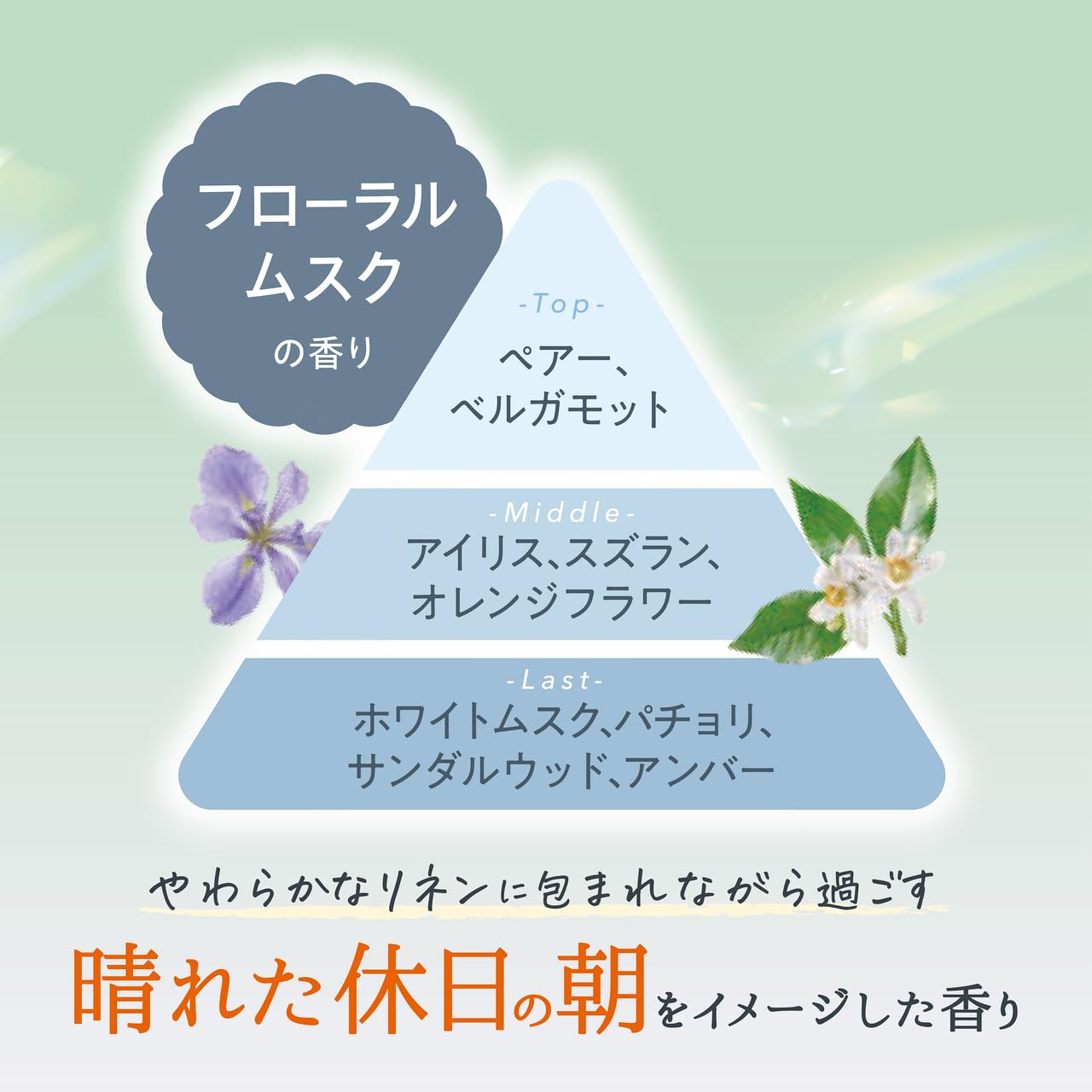 * リネンに顔をうずめた時に広がる、柔軟剤をイメージしたフローラルムスクの香り