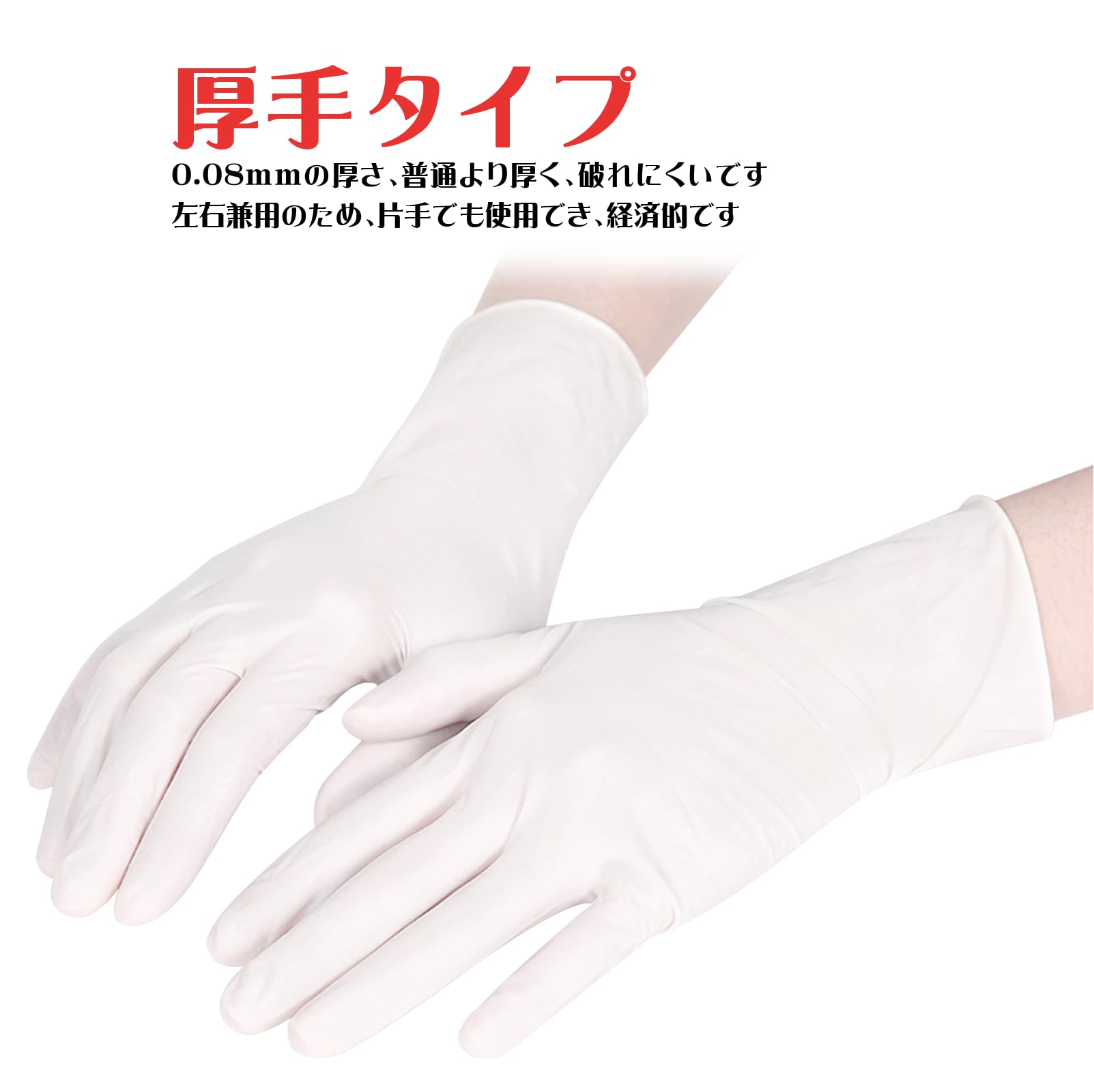 [SANYU] ニトリル手袋 ニトリルグローブ 使い捨て手袋 白 ホワイト 食品衛生法適合 0.08mm 厚手 粉なし パウダーフリー 100/300/500/1000枚入 (M, 1箱(100枚×1))