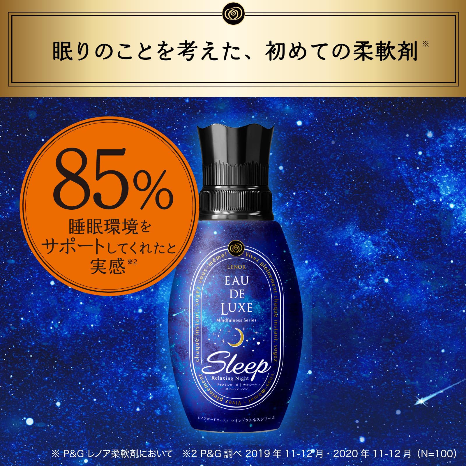 * 眠りのことを考えた初めて*3の柔軟剤。 *3: P&Gレノア柔軟剤において