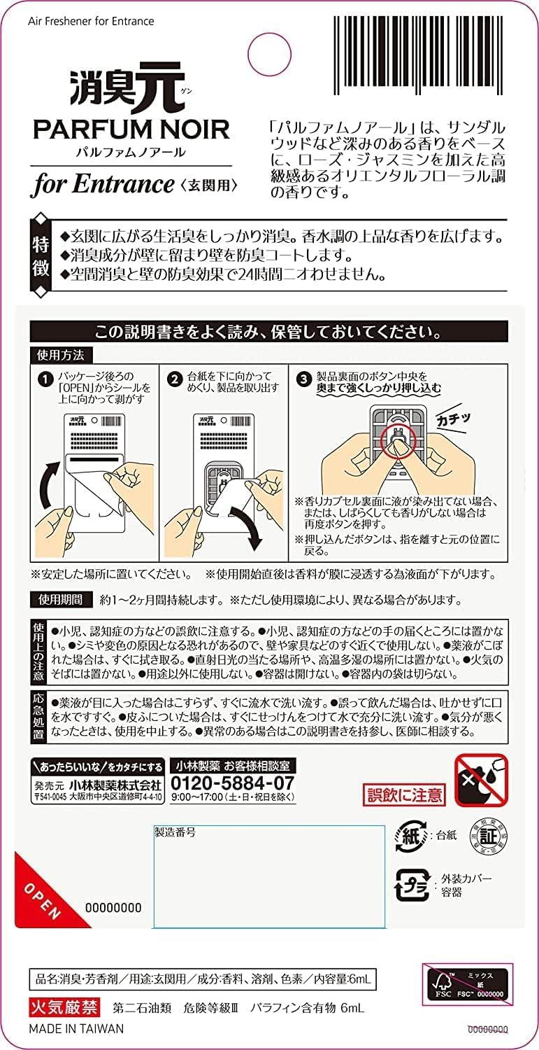 消臭元 【まとめ買い】 パルファム ノアール 玄関用 消臭 芳香剤 置き型 6ml×3個 (おまけ付き)l 小林製薬
