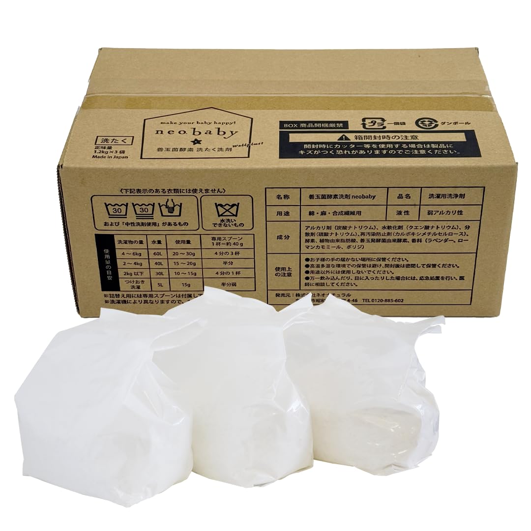 [洗濯洗剤] neobaby ネオベビー 善玉菌酵素洗たく洗剤 粉 国産 無添加 オーガニック ベビー 部屋干し ドラム式洗濯機可 ネオナチュラル 1.2kg レフィル3個セット