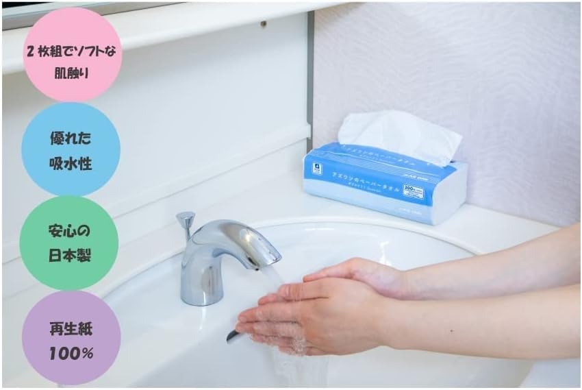アズワンのペーパータオル ダブルソフト 1ケース(200組入/袋×40袋入) 日本製 再生紙100% 2枚重ね ホワイト
