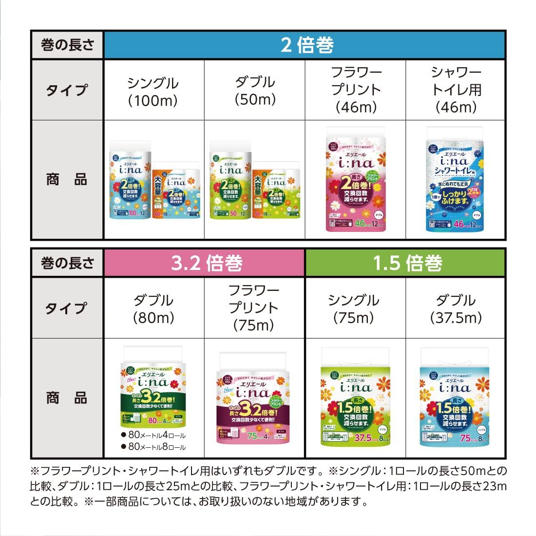 エリエール トイレットペーパー i:na(イーナ) 2倍巻き 100m×72ロール (18ロール×4パック) シングル パルプ100% 華やぐフローラルの香り【ケース販売】 | [限定] まとめてお得便