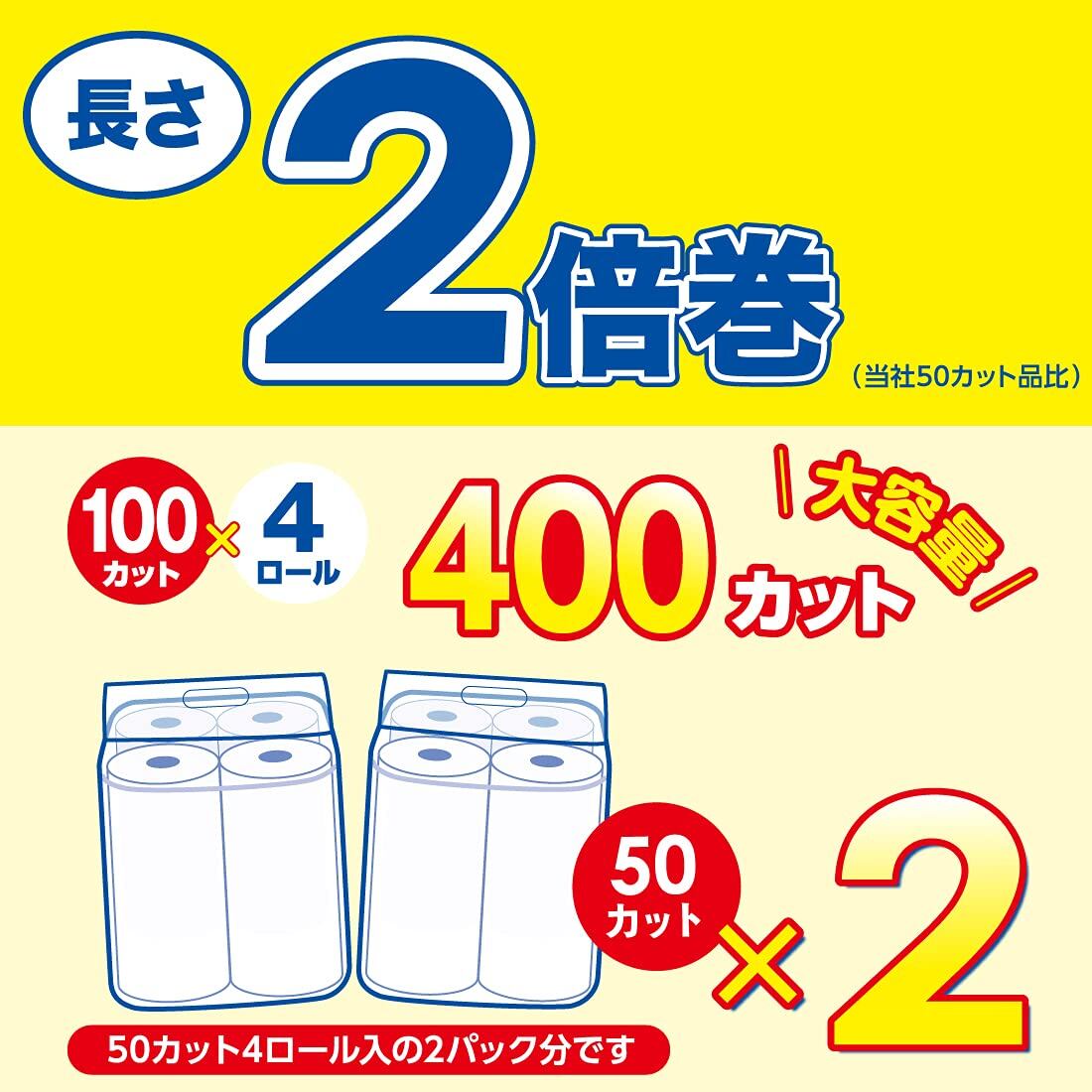 * 長さ2倍巻! (当社50カット品比)<br>50カット4ロールが2パック分!